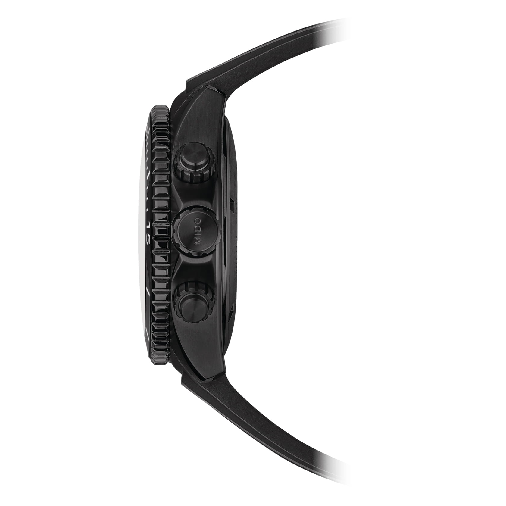 Мужские швейцарские механические часы с хронографом Mido Ocean Star Chronograph M026.627.37.051.00, механический механизм (автоматический калибр) с высокой точностью. Хронограф способен вычислять скорость на воде, используя специальную тахиметрическую шкалу в морских милях. Сапфировое стекло устойчивое к появлению царапин, обладающее высокой прозрачностью. Класс водозащиты: 200 метров, позволит плавать, нырять и заниматься другими водными видами спорта. Корпус часов изготовлен из стали, с PVD покрытием черного цвета. Дополнительным бонусом является безель из высокотехнологичной керамики.