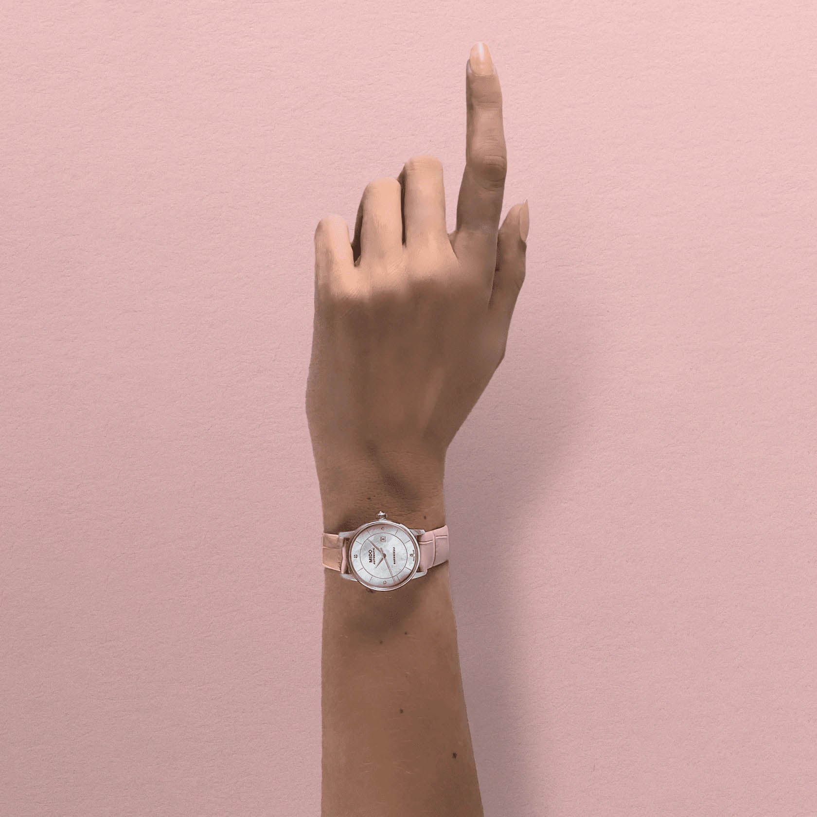 Специальное издание Baroncelli Signature Lady Colours представляет палитру красочных и женственных нот. Полностью меняет свой внешний вид, благодаря пяти разным кожаным ремешкам, легко взаимозаменяемым – «в один клик»! Четыре бриллианта сверкают на его радужном перламутровом циферблате. Его механическое сердце бьется в меру самых больших желаний благодаря отличной точности и безупречной надежности, поддерживаемой пружиной Nivachron™Nivachron™Специально разработанный инновационный сплав Nivachron™ повышает устойчивость часов к воздействию магнитных полей..