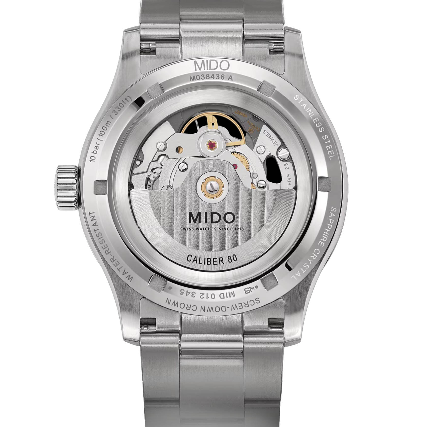 Мужские швейцарские механические часы с хронометром Mido Multifort Skeleton Vertigo M038.436.11.041.00, механический механизм (автоматический калибр) с высокой точностью. Сапфировое стеклоСапфировое стеклоПрочный и надёжный материал из кристалла сапфира синтетического происхождения, характеризующийся особой твёрдостью и устойчивостью к царапинам и повреждениям. устойчивое к появлению царапин, обладающее высокой прозрачностью. Класс водозащиты: 100 метров, позволит плавать, нырять и заниматься другими водными видами спорта. Корпус часов изготовлен из нержавеющей стали.