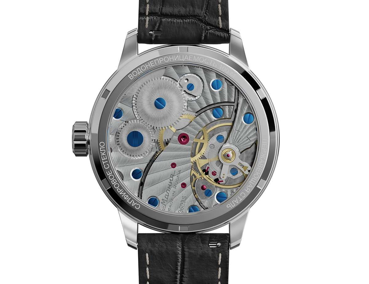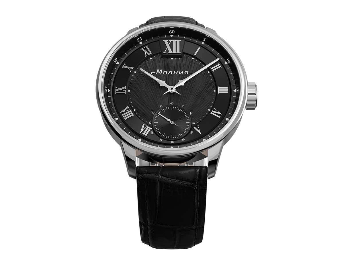Мужские механические часы с ручным подзаводом — это аксессуар от легендарного бренда «МОЛНИЯ», созданный на Челябинском часовом заводе. Корпус диаметром 41 мм и толщиной 12 мм выполнен из нержавеющей стали 316L с зеркальной полировкой. БезельБезельВнешний ободок, закрепляющий стекло. В спортивных часах так называется поворотное кольцо с делениями на циферблате, выполняет роль таймера – замеряет отрезки времени на шкале. Неподвижный безель – элемент декора. Однонаправленно вращающийся безель на дайверских часах позволяет фиксировать моменты погружения и выныривания на поверхность. также выполнен из стали с зеркальной отделкой. Циферблат чёрного цвета оформлен римскими цифрами и стальными индексами. Малая секундная стрелка вынесена на позицию 6 часов. Циферблат защищён сапфировым стекломСапфировое стеклоПрочный и надёжный материал из кристалла сапфира синтетического происхождения, характеризующийся особой твёрдостью и устойчивостью к царапинам и повреждениям. толщиной 2,5 мм. Механизм — мануфактурный калибр 3603, собранный вручную, с запасом хода до 40 часов. Прозрачная задняя крышка позволяет наблюдать за работой механизма. Часы оснащены чёрным кожаным ремешком шириной 20 мм с раскладной застёжкойРаскладная застёжкаТакой тип застёжки используется только на браслетах из металла. Она никогда не раскрывается полностью, происходит разделение на 2 и более частей. Раскладывающая застёжка снизит вероятность потери часов к минимуму. и системой быстрой замены. Водонепроницаемость 100 м позволяет использовать часы для плавания и повседневного ношения. Идеальный выбор для тех, кто ценит российское качество и традиции.