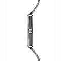 Женские кварцевые часы Obaku V236LXUUMU выполнены в минималистичном и строгом дизайне. Корпус квадратной формы из нержавеющей стали имеет размеры 28 х 28 мм и толщину всего 4.7 мм, что делает их лёгкими и удобными на руке. Циферблат чёрного цвета оснащён центральными часовой и минутной стрелками, дизайн подчёркивает отсутствие лишних деталей — только четкие линии и лаконичность. Защиту циферблата обеспечивает минеральное стеклоМинеральное стеклоМинеральное стекло представляет собой искусственно выращенный минерал кварца. Такое стекло отличается особой устойчивостью к повреждениям и царапинам. Уступает по некоторым качествам сапфировому стеклу., устойчивое к мелким механическим повреждениям. Браслет выполнен по технологии и оснащён раскладным замком для надёжного и комфортного ношения. Водозащита позволяет использовать часы в повседневных условиях без риска повреждения от случайных брызг воды. Это сочетание строгости, прочности материалов и качества исполнения для тех, кто ценит современный стиль и практичность.