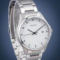 Корпус часов изготовлен из титана. Титановый браслет на раскладной застёжкеРаскладная застёжкаТакой тип застёжки используется только на браслетах из металла. Она никогда не раскрывается полностью, происходит разделение на 2 и более частей. Раскладывающая застёжка снизит вероятность потери часов к минимуму. шириной 18 мм. Заводная головка с защитой. Арабская индикация времени. Окошко даты находятся в положении 3 часа.