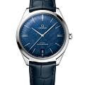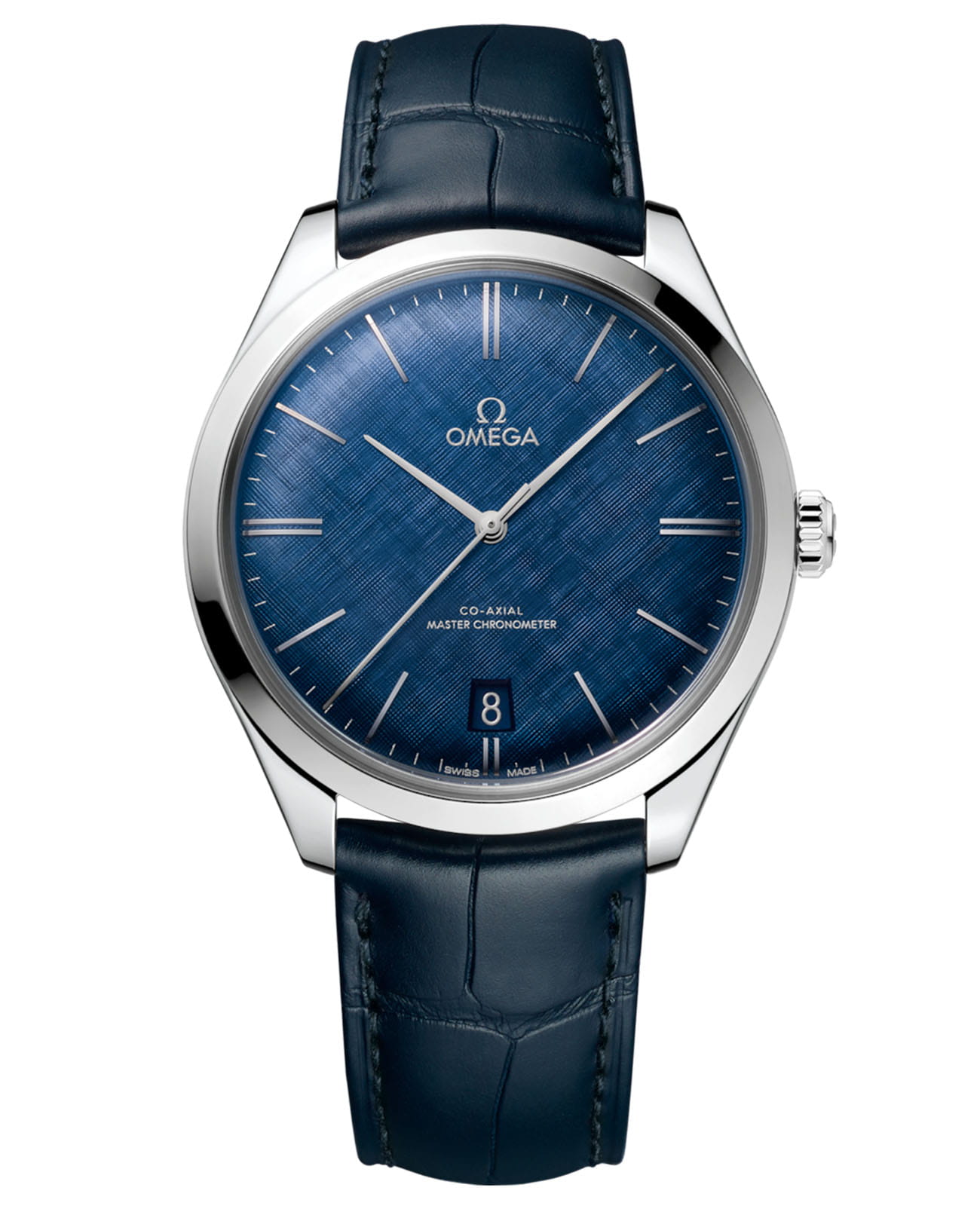 OMEGA De Ville Trésor — возрождение легенды 1949 года, где классическая элегантность встречает современные технологии. 40-мм корпус из нержавеющей стали с синим кожаным ремешком продолжает традиции тонкого дизайна. Выпуклый синий циферблат с изысканным узором украшен стрелками и индексами из белого золота18-каратное золотоОбозначение по каратной системе пробирования, оно показывает, сколько драгоценного металла содержится в изделии. 18 карат - в составе 75% чистого золота, соответствует 750 пробе.