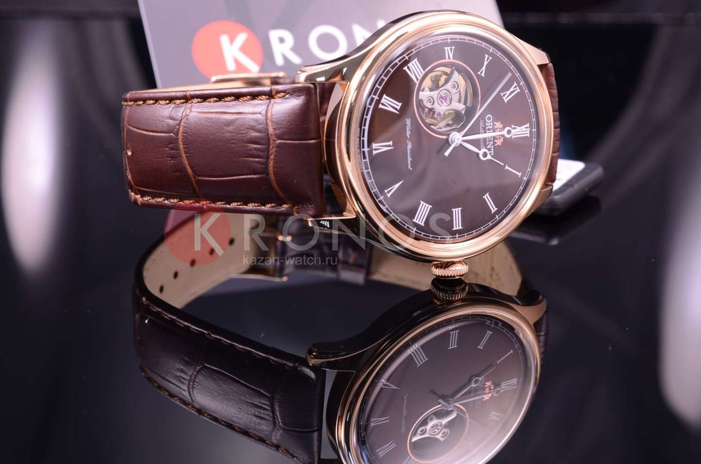 Orient Envoy Classic Open Heart AG00001T — это элегантные часы с утонченным классическим дизайном и надежным механизмом. Корпус диаметром 43 мм выполнен из нержавеющей стали с PVD-покрытиемPVDУльтратонкое покрытие наносится в технике вакуумного напыления, сочетает в себе нитрид титана особой прочности со слоем золота или оксида хрома. Несёт в себе декоративную или защитную функцию. розового цвета, что придаёт модели изысканный и стильный вид. Коричневый циферблат украшен римскими цифрами и тонкими стрелками, обеспечивающими отличную читаемость. Окошко "Open Heart" на отметке 9 часов позволяет наблюдать за работой механизма. Защитное минеральное стеклоМинеральное стеклоМинеральное стекло представляет собой искусственно выращенный минерал кварца. Такое стекло отличается особой устойчивостью к повреждениям и царапинам. Уступает по некоторым качествам сапфировому стеклу. с выпуклой формой добавляет часам винтажную эстетику. Внутри установлен автоматический механизм Orient калибра F6T22 с функцией ручного подзавода и стоп-секунды, обеспечивающий точность и запас хода до 40 часов. Модель укомплектована коричневым кожаным ремешком с тиснением под крокодила, а классическая застёжка обеспечивает комфортное и надежное ношение. Водонепроницаемость 50 метров защищает часы от брызг и кратковременного контакта с водой, делая их отличным выбором для повседневного использования.