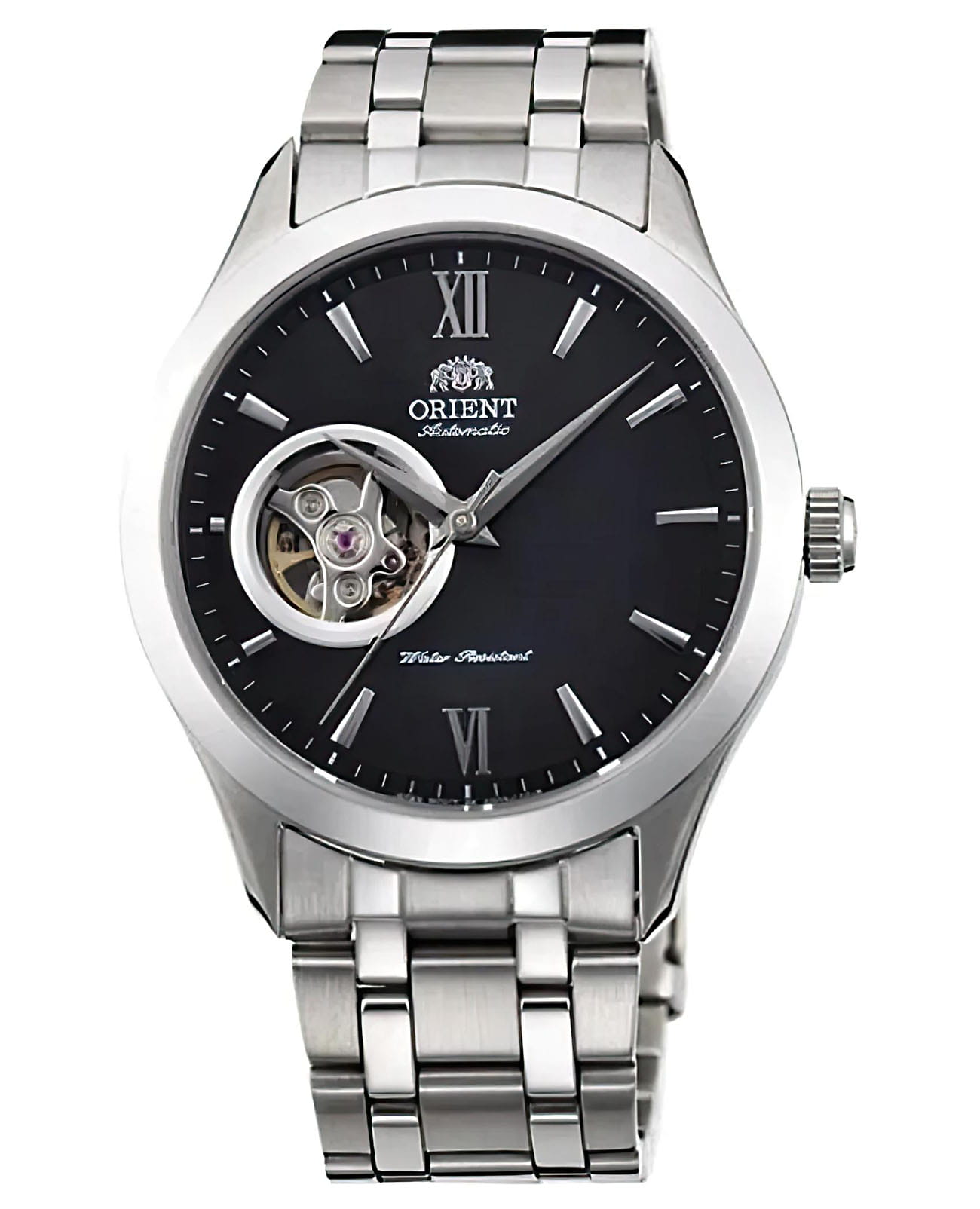 Мужские механические часы с автоподзаводом Orient Automatic AG03001B. Минеральное стеклоМинеральное стеклоМинеральное стекло представляет собой искусственно выращенный минерал кварца. Такое стекло отличается особой устойчивостью к повреждениям и царапинам. Уступает по некоторым качествам сапфировому стеклу. устойчивое к появлению царапин, обладающее высокой прозрачностью. Корпус из нержавеющей стали. Скелетон в положении 9 часов. Прозрачная задняя крышка. Класс водозащиты: 50 метров, позволит защитить корпус от случайных брызг или капель дождя. Стальной браслет на раскладной застёжкеРаскладная застёжкаТакой тип застёжки используется только на браслетах из металла. Она никогда не раскрывается полностью, происходит разделение на 2 и более частей. Раскладывающая застёжка снизит вероятность потери часов к минимуму..