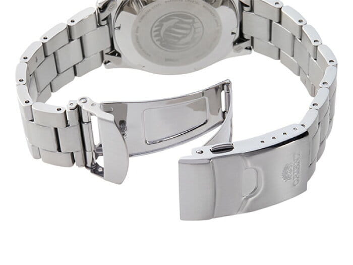 Orient Diving Sport RA-AA0002L — стильные и надёжные часы, созданные для активного образа жизни и водных приключений. Корпус диаметром 42 мм выполнен из нержавеющей стали, что гарантирует прочность и долговечность. Модель оснащена однонаправленным вращающимся безелемБезельВнешний ободок, закрепляющий стекло. В спортивных часах так называется поворотное кольцо с делениями на циферблате, выполняет роль таймера – замеряет отрезки времени на шкале. Неподвижный безель – элемент декора. Однонаправленно вращающийся безель на дайверских часах позволяет фиксировать моменты погружения и выныривания на поверхность. с PVD-покрытиемPVDУльтратонкое покрытие наносится в технике вакуумного напыления, сочетает в себе нитрид титана особой прочности со слоем золота или оксида хрома. Несёт в себе декоративную или защитную функцию. с минутной разметкой, позволяющим точно отслеживать время погружения. Глубокий синий циферблат дополнен стрелками и часовыми метками с люминесцентным покрытиемЛюминесцентное покрытиеПозволяет считывать показания времени в темноте. Производители наносят на стрелки, часовые индексы, безель или поверхность циферблата светонакопительный состав, дающий холодное свечение., обеспечивающим отличную читаемость в любых условиях освещения. Окна индикации даты и дня недели расположены на отметке «3 часа» для удобства. Защиту циферблата обеспечивает сапфировое стеклоСапфировое стеклоПрочный и надёжный материал из кристалла сапфира синтетического происхождения, характеризующийся особой твёрдостью и устойчивостью к царапинам и повреждениям., устойчивое к царапинам. Внутри установлен автоматический механизм Orient с возможностью ручного подзавода, обеспечивающий точность хода и запас энергии до 40 часов. Модель укомплектована браслетом из нержавеющей стали, а тройная застежка с системой блокировки и кнопкой гарантирует надёжную фиксацию на запястье. Водонепроницаемость 200 метров делает эти часы отличным выбором для дайвинга и активного отдыха.