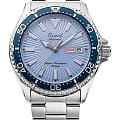 Циферблат выполнен в небесно-голубом оттенке с эффектом солнечных лучей. Эстетику подчёркивает винтажный логотип Orient, а крупные часовые метки и стрелки с люминесцентным покрытиемЛюминесцентное покрытиеПозволяет считывать показания времени в темноте. Производители наносят на стрелки, часовые индексы, безель или поверхность циферблата светонакопительный состав, дающий холодное свечение. обеспечивают отличную читаемость. Защиту обеспечивает устойчивое к царапинам сапфировое стеклоСапфировое стеклоПрочный и надёжный материал из кристалла сапфира синтетического происхождения, характеризующийся особой твёрдостью и устойчивостью к царапинам и повреждениям..