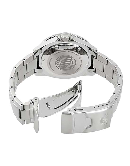 Мужские механические часы с автоподзаводом Orient Diving Sport Automatic RA-AA0913L. Корпус и браслет часов изготовлены из нержавеющей стали. Минеральное стеклоМинеральное стеклоМинеральное стекло представляет собой искусственно выращенный минерал кварца. Такое стекло отличается особой устойчивостью к повреждениям и царапинам. Уступает по некоторым качествам сапфировому стеклу. высокой прозрачности с антибликовым покрытием. БезельБезельВнешний ободок, закрепляющий стекло. В спортивных часах так называется поворотное кольцо с делениями на циферблате, выполняет роль таймера – замеряет отрезки времени на шкале. Неподвижный безель – элемент декора. Однонаправленно вращающийся безель на дайверских часах позволяет фиксировать моменты погружения и выныривания на поверхность. с PVD-покрытиемPVDУльтратонкое покрытие наносится в технике вакуумного напыления, сочетает в себе нитрид титана особой прочности со слоем золота или оксида хрома. Несёт в себе декоративную или защитную функцию.. Окошко дня недели и даты находится в положении 3 часа. Стрелки и метки с люминесцентным покрытиемЛюминесцентное покрытиеПозволяет считывать показания времени в темноте. Производители наносят на стрелки, часовые индексы, безель или поверхность циферблата светонакопительный состав, дающий холодное свечение.. Класс водозащиты: 200 метров, позволит плавать, нырять и заниматься другими водными видами спорта. Стальной браслет на раскладной застёжкеРаскладная застёжкаТакой тип застёжки используется только на браслетах из металла. Она никогда не раскрывается полностью, происходит разделение на 2 и более частей. Раскладывающая застёжка снизит вероятность потери часов к минимуму..