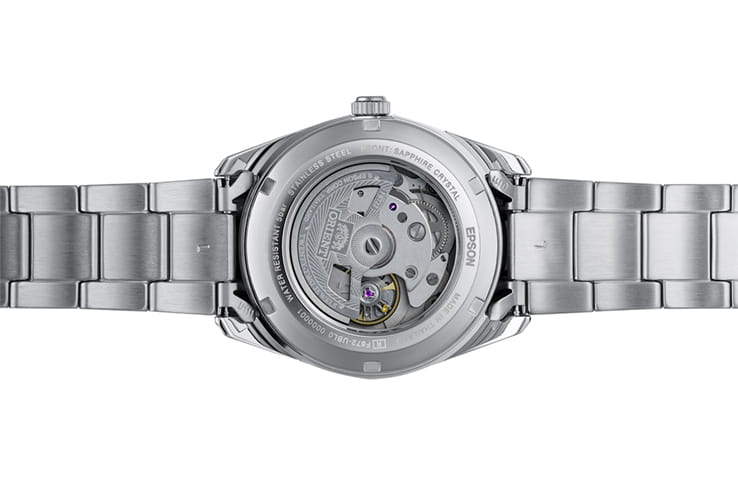 Orient Classic Automatic RA-AC0R02L – элегантные механические часы, сочетающие классический дизайн и современные технологии. Корпус диаметром 38,5 мм выполнен из нержавеющей стали, обеспечивая долговечность и стильный внешний вид. Синий циферблат с лаконичными метками и стрелками защищён сапфировым стекломСапфировое стеклоПрочный и надёжный материал из кристалла сапфира синтетического происхождения, характеризующийся особой твёрдостью и устойчивостью к царапинам и повреждениям., устойчивым к царапинам.  Часы оснащены автоматическим механизмом Orient с калибром F6722. Функциональность включает индикацию даты, расположенной в окне на отметке «3 часа». Водозащита до 50 метров (5 бар) делает модель подходящей для повседневного использования, защищая её от случайных брызг. Часы с люминесцентным покрытиемЛюминесцентное покрытиеПозволяет считывать показания времени в темноте. Производители наносят на стрелки, часовые индексы, безель или поверхность циферблата светонакопительный состав, дающий холодное свечение., обеспечивающими мгновенное считывание времени даже в темноте. Элегантный браслет из нержавеющей стали оснащён раскладной застёжкойРаскладная застёжкаТакой тип застёжки используется только на браслетах из металла. Она никогда не раскрывается полностью, происходит разделение на 2 и более частей. Раскладывающая застёжка снизит вероятность потери часов к минимуму., обеспечивающей комфортное ношение и надёжную фиксацию на запястье.