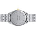 Orient RA-WG0601S — женская кварцевая модель из коллекции Contemporary с элегантным и сдержанным дизайном. Корпус диаметром 32,1 мм выполнен из нержавеющей стали с золотистым PVDPVDУльтратонкое покрытие наносится в технике вакуумного напыления, сочетает в себе нитрид титана особой прочности со слоем золота или оксида хрома. Несёт в себе декоративную или защитную функцию.-покрытием на безелеБезельВнешний ободок, закрепляющий стекло. В спортивных часах так называется поворотное кольцо с делениями на циферблате, выполняет роль таймера – замеряет отрезки времени на шкале. Неподвижный безель – элемент декора. Однонаправленно вращающийся безель на дайверских часах позволяет фиксировать моменты погружения и выныривания на поверхность., создающим изысканный акцент. Белый циферблат украшен тонкими метками и стрелками, обеспечивающими лёгкую читаемость, а апертура даты расположена в позиции «3 часа». Защитную функцию выполняет минеральное стеклоМинеральное стеклоМинеральное стекло представляет собой искусственно выращенный минерал кварца. Такое стекло отличается особой устойчивостью к повреждениям и царапинам. Уступает по некоторым качествам сапфировому стеклу., стойкое к повседневным повреждениям. Часы работают на точном кварцевом механизме на солнечной энергии, не требующем подзавода. Водозащита составляет 5 бар (50 м), что защищает модель от брызг и дождя. Браслет из нержавеющей стали с PVDPVDУльтратонкое покрытие наносится в технике вакуумного напыления, сочетает в себе нитрид титана особой прочности со слоем золота или оксида хрома. Несёт в себе декоративную или защитную функцию.-покрытием гармонично завершает образ, подчеркивая классический стиль и универсальность этих часов.