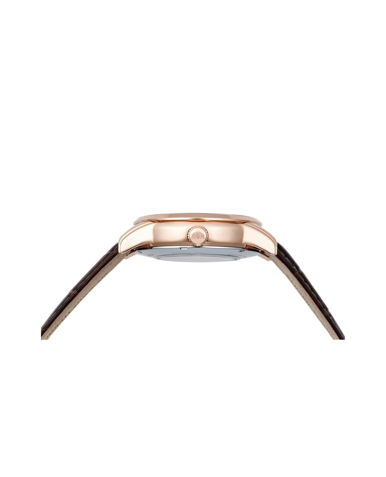 Ремешок часов изготовлен из коричневой кожи, что придаёт часам классический и элегантный вид. Застёжка выполнена в виде раскладной застежкиРаскладная застёжкаТакой тип застёжки используется только на браслетах из металла. Она никогда не раскрывается полностью, происходит разделение на 2 и более частей. Раскладывающая застёжка снизит вероятность потери часов к минимуму., которая обеспечивает удобство и надёжную фиксацию на запястье.