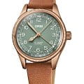 Многокомпонентный бронзовый корпус, стальная задняя крышка корпуса. Сапфировое стеклоСапфировое стеклоПрочный и надёжный материал из кристалла сапфира синтетического происхождения, характеризующийся особой твёрдостью и устойчивостью к царапинам и повреждениям., выпуклое с обеих сторон, внутреннее антибликовое покрытие. Нержавеющая сталь, завинчивающаяся прозрачная задняя крышка из минерального стеклаМинеральное стеклоМинеральное стекло представляет собой искусственно выращенный минерал кварца. Такое стекло отличается особой устойчивостью к повреждениям и царапинам. Уступает по некоторым качествам сапфировому стеклу.. Стрелки с люминесцентным покрытиемЛюминесцентное покрытиеПозволяет считывать показания времени в темноте. Производители наносят на стрелки, часовые индексы, безель или поверхность циферблата светонакопительный состав, дающий холодное свечение.. Кожаный ремень.