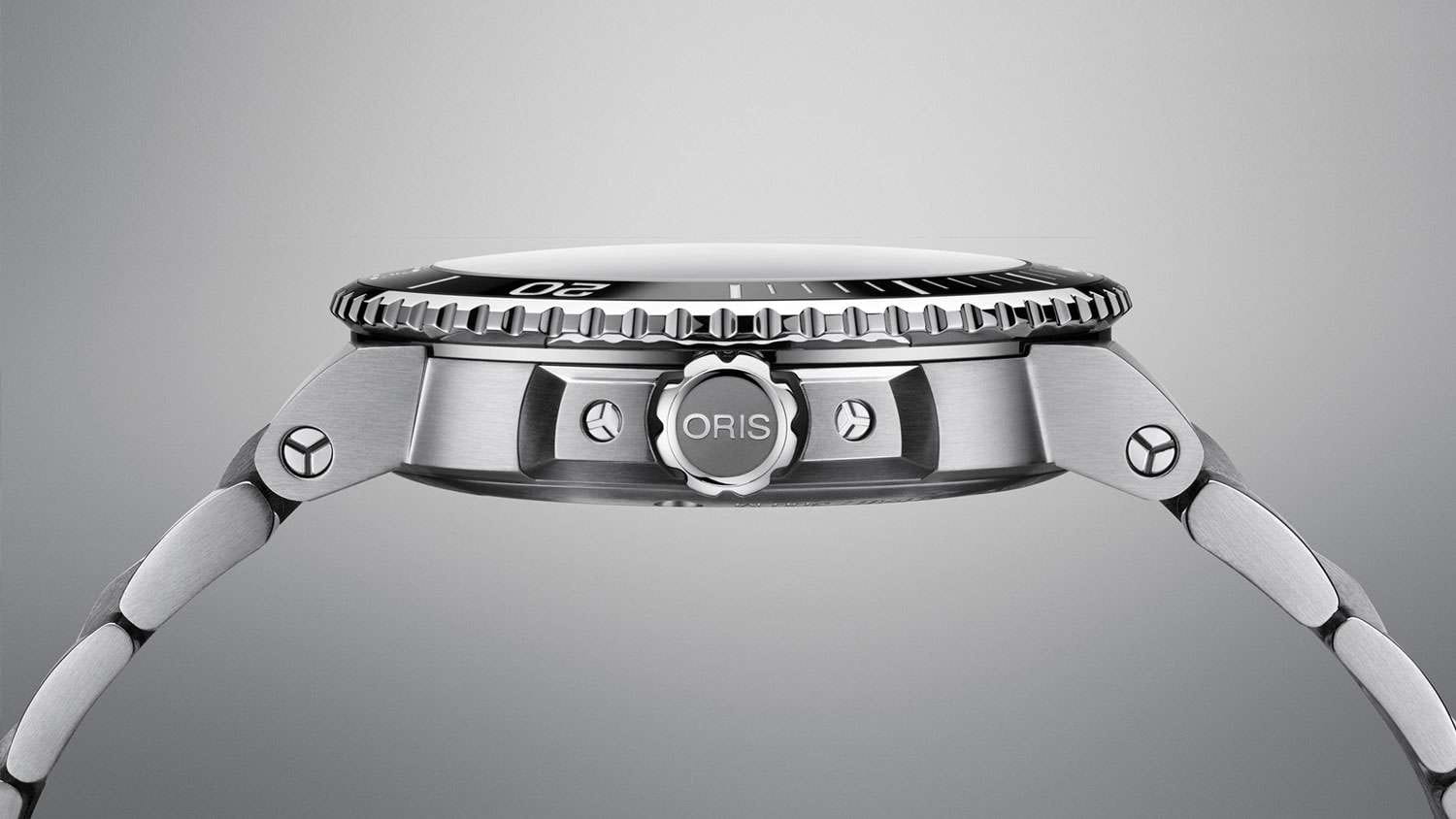 Oris 01 733 7730 4135-07 8 24 05PEB Aquis – это воплощение швейцарского часового мастерства, где традиции встречаются с инновациями. Эти механические наручные часы созданы для тех, кто ценит точность, надежность и безупречный стиль. Корпус из нержавеющей стали диаметром 43,5 мм идеально сбалансирован и элегантен. Циферблат выполнен по технологии Sunray (солнечные лучи). Вращающийся керамический безельБезельВнешний ободок, закрепляющий стекло. В спортивных часах так называется поворотное кольцо с делениями на циферблате, выполняет роль таймера – замеряет отрезки времени на шкале. Неподвижный безель – элемент декора. Однонаправленно вращающийся безель на дайверских часах позволяет фиксировать моменты погружения и выныривания на поверхность.. Сапфировое стеклоСапфировое стеклоПрочный и надёжный материал из кристалла сапфира синтетического происхождения, характеризующийся особой твёрдостью и устойчивостью к царапинам и повреждениям. с антибликовым покрытием защищает циферблат от царапин и обеспечивает отличную читаемость при любом освещении. Окошко даты находится в положении 6 часов. Быстрая установка даты. Браслет из нержавеющей стали идеально дополняют дизайн часов, обеспечивая комфортное ношение. Люминесцентное покрытиеЛюминесцентное покрытиеПозволяет считывать показания времени в темноте. Производители наносят на стрелки, часовые индексы, безель или поверхность циферблата светонакопительный состав, дающий холодное свечение. стрелок и меток позволит вам следить за временем даже в полной темноте. Завинчивающаяся прозрачная задняя крышка с сапфировым стеклом. Раскладная застёжкаРаскладная застёжкаТакой тип застёжки используется только на браслетах из металла. Она никогда не раскрывается полностью, происходит разделение на 2 и более частей. Раскладывающая застёжка снизит вероятность потери часов к минимуму. с удлинением для дайверовУдлинение для дайверовЗастёжка с удлинением для дайверов представляет собой безопасное крепление, которое позволяет надевать часы поверх гидрокостюма. Гибкая застёжка удлиняется на 1-2 миллиметра..