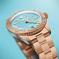Часы Divers Sixty-Five "Cotton Candy" - это маяк радости. Корпус, безель, заводная головка полностью выполнены из бронзы, а циферблат окрашен в яркие цвета. Часы в 38-миллиметровом корпусе унисекс оснащены механизмом Swiss Made. Эти часы символизируют оптимизм и лучшие времена.