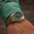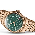 Big Crown Pointer Date, ставшая иконой Oris в 1938, теперь украшена зеленым циферблатом. Этот нестареющий дизайн включает в себя массивный бронзовый корпус и крупную заводную головку, а также красную стрелку указателя даты с полумесяцем. Фирменный образец швейцарского часового искусства.