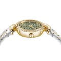 Яркие, классные часы. Зеленый циферблат с логотипом бренда украшен кристаллами Swarovski.Круглый корпус выполнен из нержавеющей стали с частичным IP покрытием цвета желтого золота и декорирован кристаллами по безелю. Прочное минеральное стекло устойчивое к мелким механическим повреждениям.