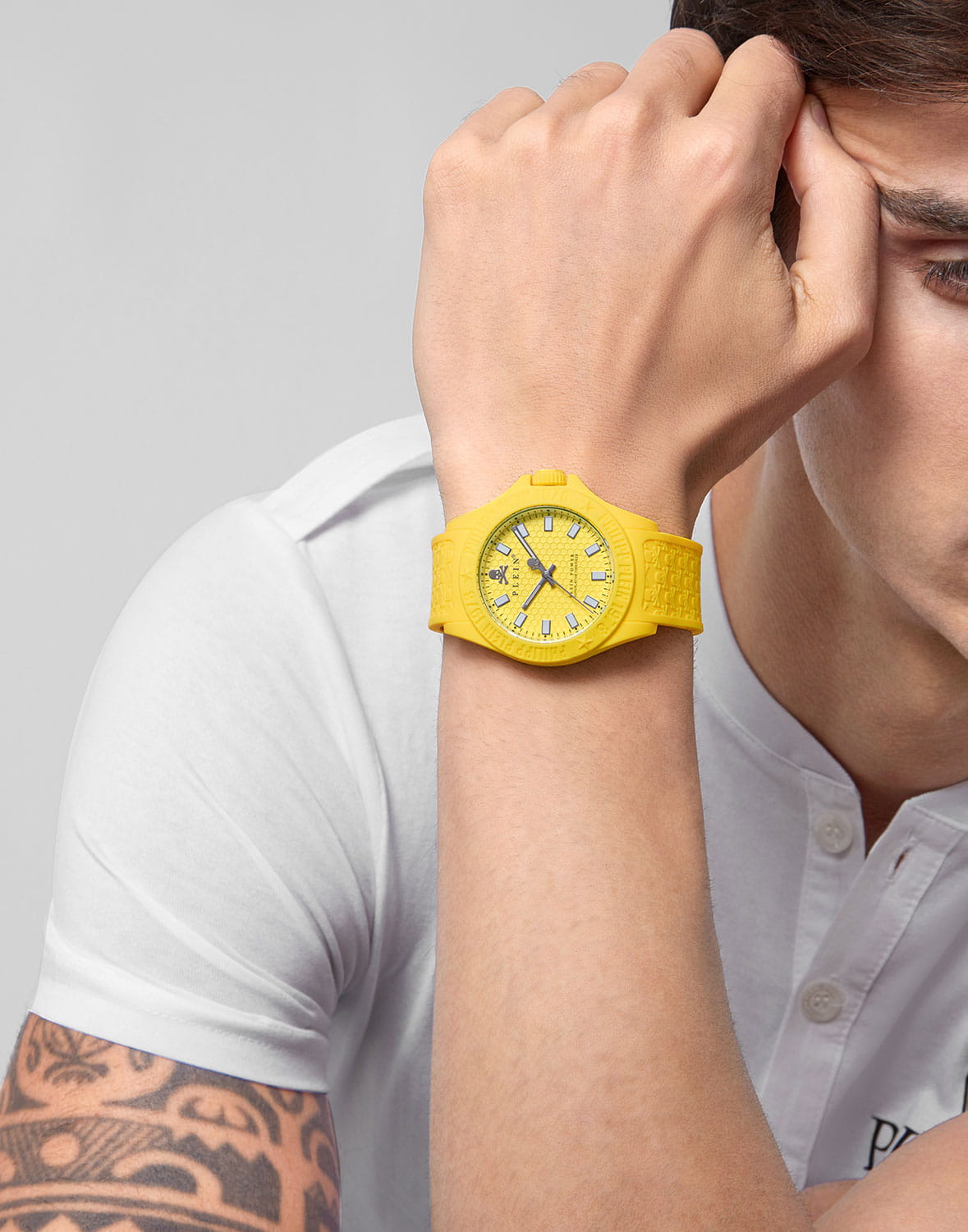 Яркие унисекс часы Philipp Plein Plein Power PWKAA1021, кварцевый механизм с высокой точностью. Класс водозащиты: 50 метров, позволит защитить корпус от случайных брызг или капель дождя. Корпус часов изготовлен из силикона, цвета.
