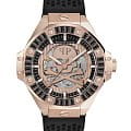 Эти бесподобные часы в стильном дизайне с точным и надежным механизмом завораживают своим корпусом геометричной формы и культовыми элементами бренда и без сомнений сделают мужской образ еще более харизматичным и брутальным. Скелетонизированные мужские механические часы с автоподзаводом. Необычный стальной корпус с IP-покрытиемIP-покрытиеМетод ионного напыления. Демонстрирует повышенную устойчивость к истиранию, окислению и химическим веществам. Под воздействием высокого давления и температуры около 1500°C молекулы металла надёжно соединяются с частицами корпуса часов.. Циферблат декорирован логотипом бренда в положении 12 часов и изображением черепа с костями. Метки в виде штрихов. Минеральное стеклоМинеральное стеклоМинеральное стекло представляет собой искусственно выращенный минерал кварца. Такое стекло отличается особой устойчивостью к повреждениям и царапинам. Уступает по некоторым качествам сапфировому стеклу. устойчивое к мелким механическим повреждениям. Стрелки и метки с люминесцентным покрытиемЛюминесцентное покрытиеПозволяет считывать показания времени в темноте. Производители наносят на стрелки, часовые индексы, безель или поверхность циферблата светонакопительный состав, дающий холодное свечение.. Граненая заводная головка. Неподвижный безельБезельВнешний ободок, закрепляющий стекло. В спортивных часах так называется поворотное кольцо с делениями на циферблате, выполняет роль таймера – замеряет отрезки времени на шкале. Неподвижный безель – элемент декора. Однонаправленно вращающийся безель на дайверских часах позволяет фиксировать моменты погружения и выныривания на поверхность. из нержавеющей стали с IP-покрытиемIP-покрытиеМетод ионного напыления. Демонстрирует повышенную устойчивость к истиранию, окислению и химическим веществам. Под воздействием высокого давления и температуры около 1500°C молекулы металла надёжно соединяются с частицами корпуса часов. и кристаллами. На задней крышке имеется прозрачное окошко, через которое можно наблюдать работу механизма часов. Черный перфорированный силиконовый ремешок с классической застежкой и шестиугольным логотипом бренда. Фирменная дизайнерская упаковка.