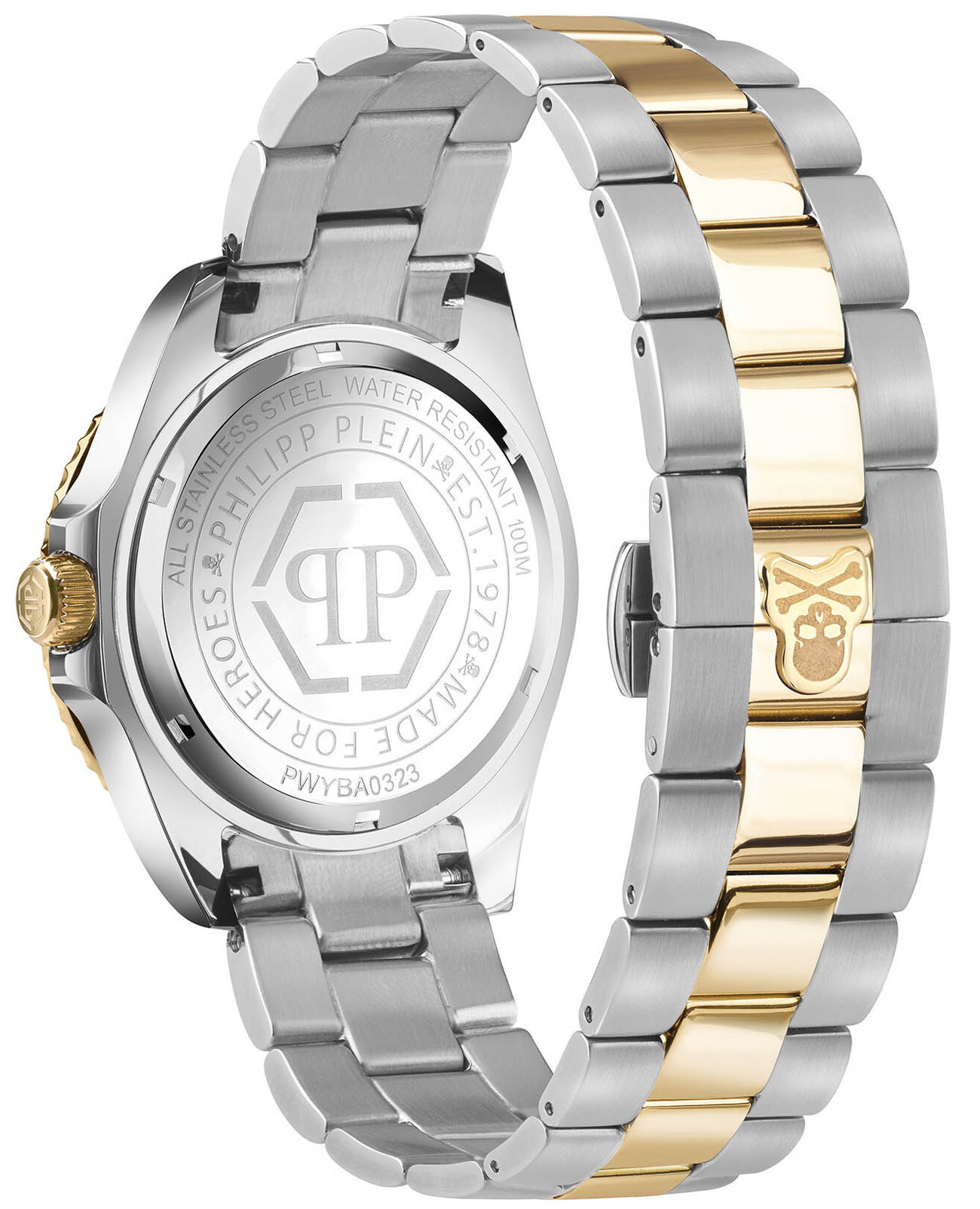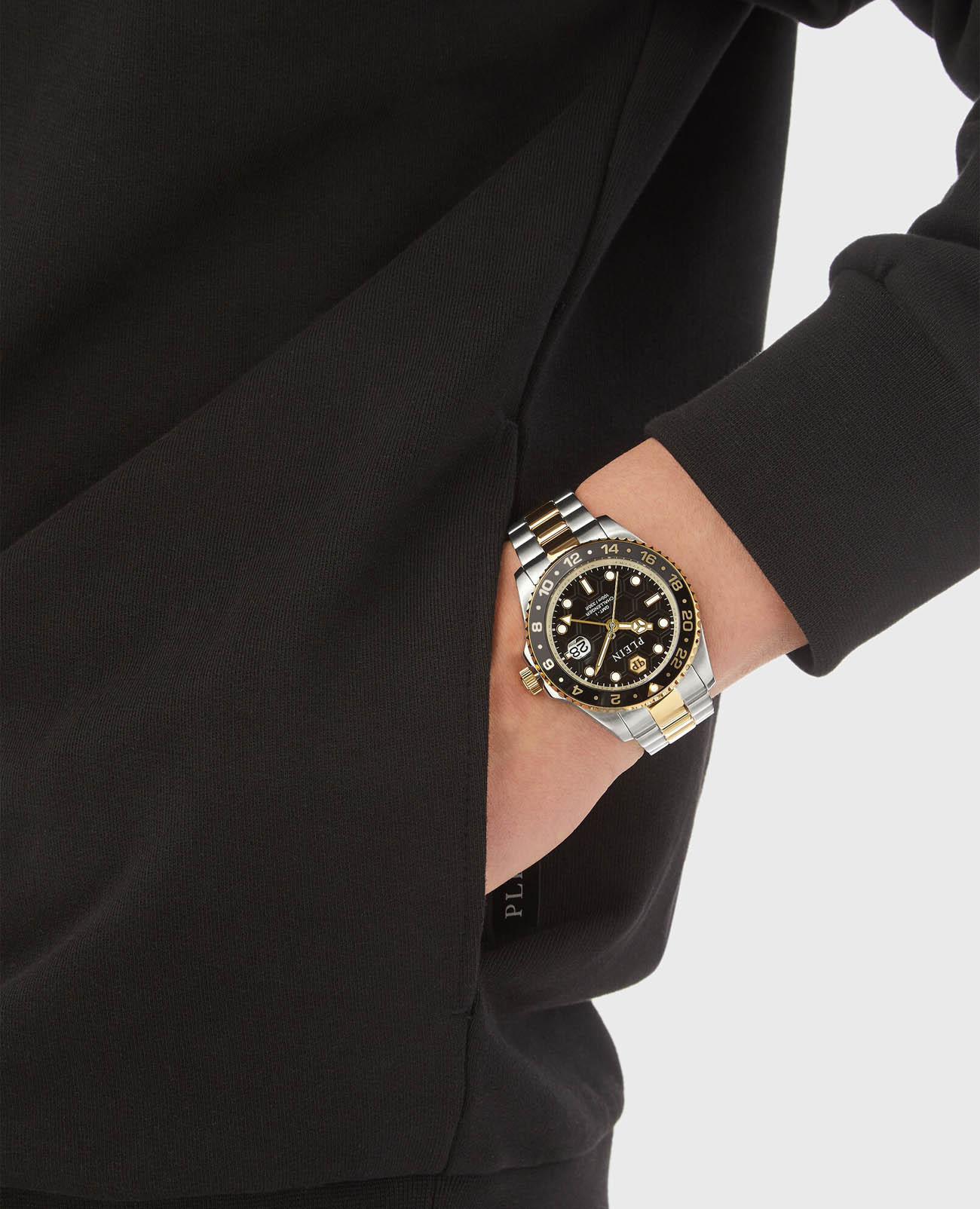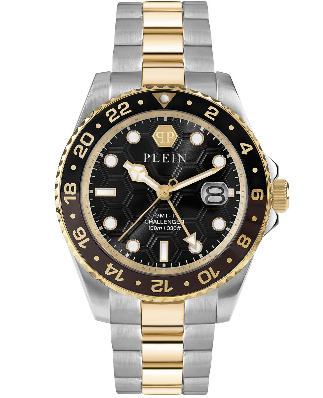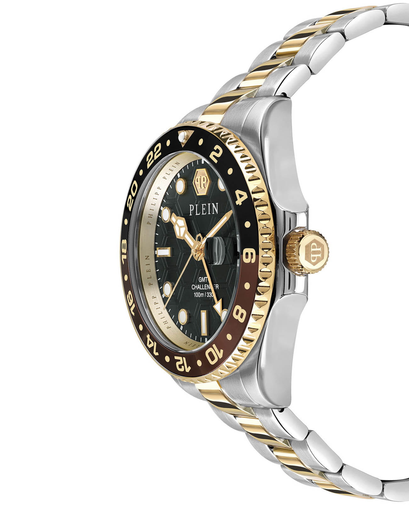 Мужские часы Philipp Plein GMT-I Challenger PWYBA0323 с надежным кварцевым механизмом. Корпус часов изготовлен из нержавеющей стали. Минеральное стеклоМинеральное стеклоМинеральное стекло представляет собой искусственно выращенный минерал кварца. Такое стекло отличается особой устойчивостью к повреждениям и царапинам. Уступает по некоторым качествам сапфировому стеклу. устойчивое к мелким механическим повреждениям. Влагозащита: 100 метров, позволит плавать, нырять и заниматься другими водными видами спорта. Стрелки и метки с люминесцентным покрытиемЛюминесцентное покрытиеПозволяет считывать показания времени в темноте. Производители наносят на стрелки, часовые индексы, безель или поверхность циферблата светонакопительный состав, дающий холодное свечение.. Окошко даты находится в положении 3 часа. Вращающийся безельБезельВнешний ободок, закрепляющий стекло. В спортивных часах так называется поворотное кольцо с делениями на циферблате, выполняет роль таймера – замеряет отрезки времени на шкале. Неподвижный безель – элемент декора. Однонаправленно вращающийся безель на дайверских часах позволяет фиксировать моменты погружения и выныривания на поверхность. с PVD-покрытиемPVDУльтратонкое покрытие наносится в технике вакуумного напыления, сочетает в себе нитрид титана особой прочности со слоем золота или оксида хрома. Несёт в себе декоративную или защитную функцию.. Стальной браслет с частичным IP-покрытиемIP-покрытиеМетод ионного напыления. Демонстрирует повышенную устойчивость к истиранию, окислению и химическим веществам. Под воздействием высокого давления и температуры около 1500°C молекулы металла надёжно соединяются с частицами корпуса часов. на застёжке-бабочке с кнопкамиЗастёжка "бабочка"Такой вид застёжки дополняется предохранителями, помогающими избежать случайного раскрытия браслета. Обладают изящным исполнением. .