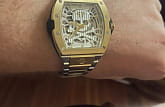 Philipp Plein The $keleton 2.0 PWJFA0525 - это дерзкие и бескомпромиссные часы, воплощающие бунтарский дух бренда. Их отличает узнаваемый мотив черепа, ставший визитной карточкой Philipp Plein, искусно интегрированный в дизайн циферблата. Скелетонизированные мужские механические часы с автоподзаводом. Бочкообразный стальной корпус диаметром 44 мм. Стальной браслет на застёжке «бабочка» с кнопкамиЗастёжка "бабочка"Такой вид застёжки дополняется предохранителями, помогающими избежать случайного раскрытия браслета. Обладают изящным исполнением. обеспечивает надёжную фиксацию и комфортное ношение. БезельБезельВнешний ободок, закрепляющий стекло. В спортивных часах так называется поворотное кольцо с делениями на циферблате, выполняет роль таймера – замеряет отрезки времени на шкале. Неподвижный безель – элемент декора. Однонаправленно вращающийся безель на дайверских часах позволяет фиксировать моменты погружения и выныривания на поверхность. с PVD-покрытиемPVDУльтратонкое покрытие наносится в технике вакуумного напыления, сочетает в себе нитрид титана особой прочности со слоем золота или оксида хрома. Несёт в себе декоративную или защитную функцию.. Метки в виде точек. Минеральное стеклоМинеральное стеклоМинеральное стекло представляет собой искусственно выращенный минерал кварца. Такое стекло отличается особой устойчивостью к повреждениям и царапинам. Уступает по некоторым качествам сапфировому стеклу. защищает циферблат от царапин. Люминесцентное покрытиеЛюминесцентное покрытиеПозволяет считывать показания времени в темноте. Производители наносят на стрелки, часовые индексы, безель или поверхность циферблата светонакопительный состав, дающий холодное свечение. стрелок и меток позволит следить за временем даже в полной темноте. Граненая заводная головка. Влагозащита: 50 метров, позволит защитить корпус от случайных брызг или капель дождя. Идеальный аксессуар для тех, кто ценит индивидуальность и не боится выделяться из толпы.