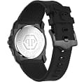 Мужские кварцевые часы с фирменным изображением черепа Philipp Plein The Skull King PWLAA0422, кварцевый механизм с высокой точностью. Класс водозащиты: 50 метров, позволит защитить корпус от случайных брызг или капель дождя. Корпус часов изготовлен из стали с IP-покрытиемIP-покрытиеМетод ионного напыления. Демонстрирует повышенную устойчивость к истиранию, окислению и химическим веществам. Под воздействием высокого давления и температуры около 1500°C молекулы металла надёжно соединяются с частицами корпуса часов. черного цвета. Черный силиконовый ремешок шириной 26 мм, стандартная застежка. Прочное минеральное стеклоМинеральное стеклоМинеральное стекло представляет собой искусственно выращенный минерал кварца. Такое стекло отличается особой устойчивостью к повреждениям и царапинам. Уступает по некоторым качествам сапфировому стеклу. устойчивое к мелким механическим повреждениям.