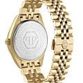 Philipp Plein Date Superlative PWMFA1025 - часы в современном дизайне несомненно добавят вам выразительности и станут главным акцентом вашего стильного образа. Мужские кварцевые часы с высокой точностью. Круглый стальной корпус с PVD-покрытиемPVDУльтратонкое покрытие наносится в технике вакуумного напыления, сочетает в себе нитрид титана особой прочности со слоем золота или оксида хрома. Несёт в себе декоративную или защитную функцию. золотистого цвета, диаметром 41 мм. Циферблат декорирован логотипом бренда в положении 12 часов, метки в виде штрихов. Минеральное стеклоМинеральное стеклоМинеральное стекло представляет собой искусственно выращенный минерал кварца. Такое стекло отличается особой устойчивостью к повреждениям и царапинам. Уступает по некоторым качествам сапфировому стеклу. защищает циферблат от царапин. Люминесцентное покрытиеЛюминесцентное покрытиеПозволяет считывать показания времени в темноте. Производители наносят на стрелки, часовые индексы, безель или поверхность циферблата светонакопительный состав, дающий холодное свечение. стрелок позволит следить за временем даже в полной темноте. Окошко даты находится в положении 3 часа. Стальной браслет с PVD-покрытиемPVDУльтратонкое покрытие наносится в технике вакуумного напыления, сочетает в себе нитрид титана особой прочности со слоем золота или оксида хрома. Несёт в себе декоративную или защитную функцию. на застёжке-бабочке с кнопкамиЗастёжка "бабочка"Такой вид застёжки дополняется предохранителями, помогающими избежать случайного раскрытия браслета. Обладают изящным исполнением. , обеспечивает комфортное ношение. Граненая заводная головка. Влагозащита: 50 метров, позволит защитить корпус от случайных брызг или капель дождя. Идеальный аксессуар для тех, кто ценит индивидуальность и не боится выделяться из толпы.