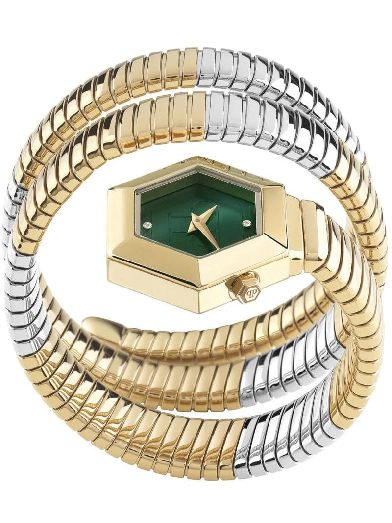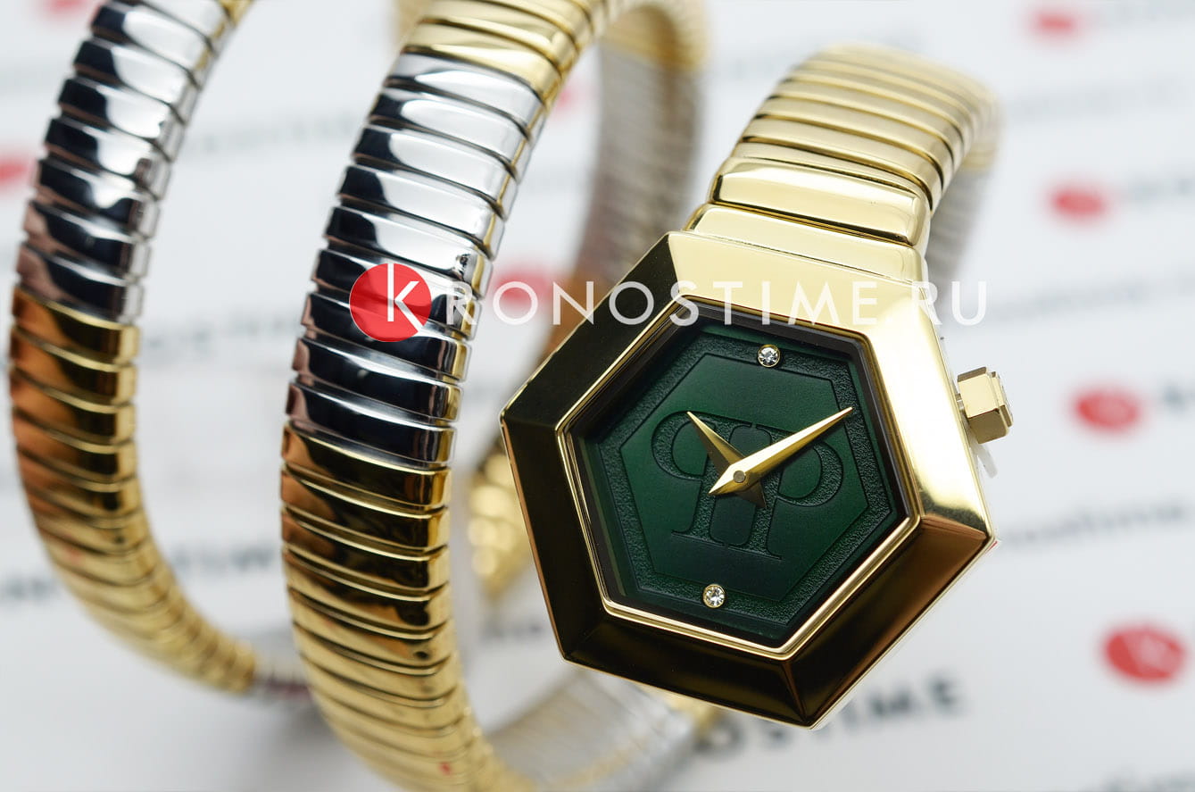 Яркие женские часы Philipp Plein Snake Hexagon PWZAA0323 с минеральным стекломМинеральное стеклоМинеральное стекло представляет собой искусственно выращенный минерал кварца. Такое стекло отличается особой устойчивостью к повреждениям и царапинам. Уступает по некоторым качествам сапфировому стеклу.. Символ неотразимого гламура и роскоши. Соблазнительное воплощение легендарной утонченности, такой аксессуар - неотразимый символ, который вселяет в женщин уверенность и силу. Авангардная геометрия, чувственные изгибы, изысканная привлекательность и драгоценные мысли - все это сделает вас непревзойденной. Корпус изготовлен из стали с IP-покрытиемIP-покрытиеМетод ионного напыления. Демонстрирует повышенную устойчивость к истиранию, окислению и химическим веществам. Под воздействием высокого давления и температуры около 1500°C молекулы металла надёжно соединяются с частицами корпуса часов..