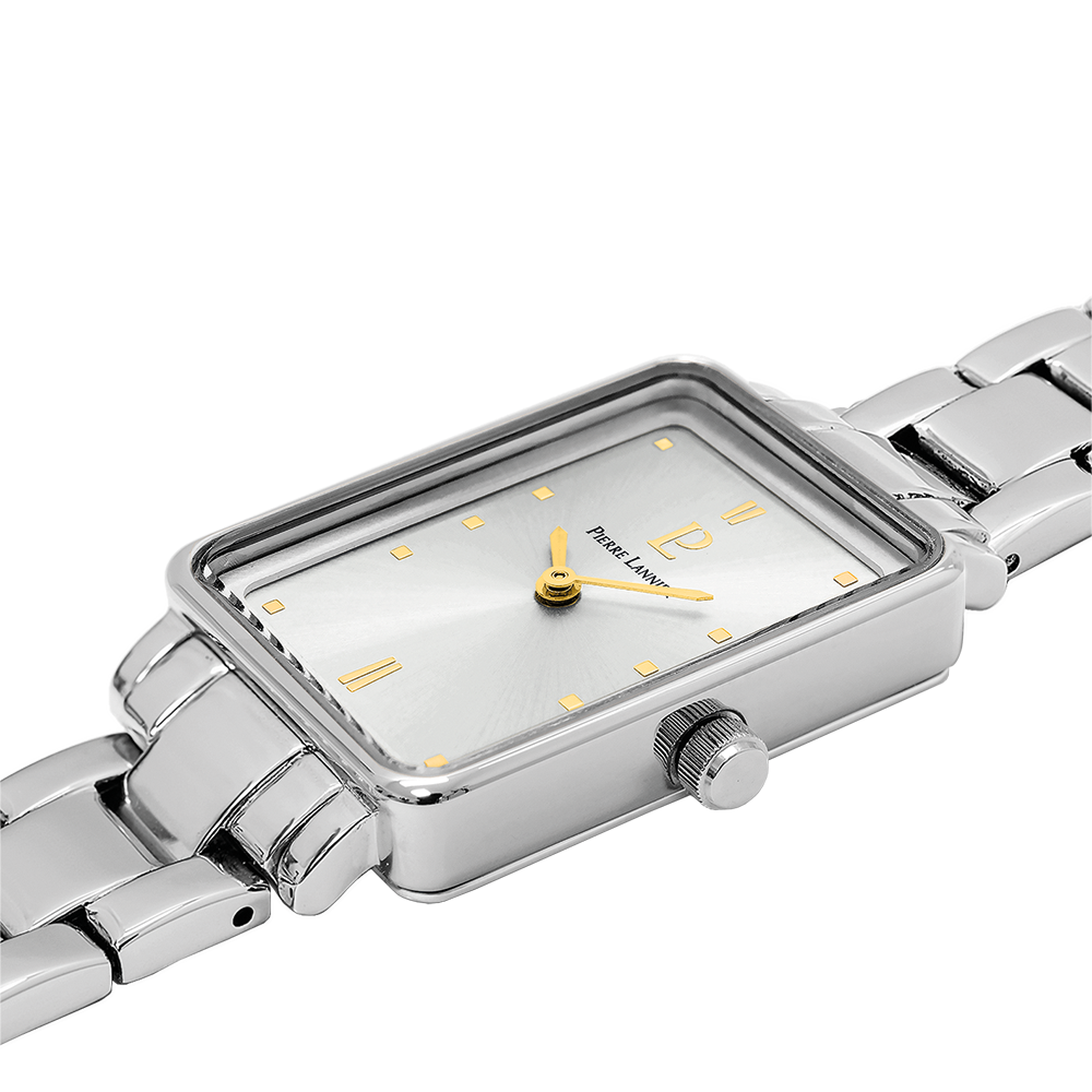 Женские Pierre Lannier Ariane 051J621. Минеральное стеклоМинеральное стеклоМинеральное стекло представляет собой искусственно выращенный минерал кварца. Такое стекло отличается особой устойчивостью к повреждениям и царапинам. Уступает по некоторым качествам сапфировому стеклу. устойчивое к мелким механическим повреждениям. Центральные часовая, минутная и секундная стрелки. Корпус выполнен из полированной нержавеющей стали. Водостойкость: 30 метров, позволит защитить корпус от случайных брызг или капель дождя. Размер корпуса составляет 21 х 28,4 мм, толщина 6,2 мм. Стальной браслет на раскладной застёжкеРаскладная застёжкаТакой тип застёжки используется только на браслетах из металла. Она никогда не раскрывается полностью, происходит разделение на 2 и более частей. Раскладывающая застёжка снизит вероятность потери часов к минимуму..