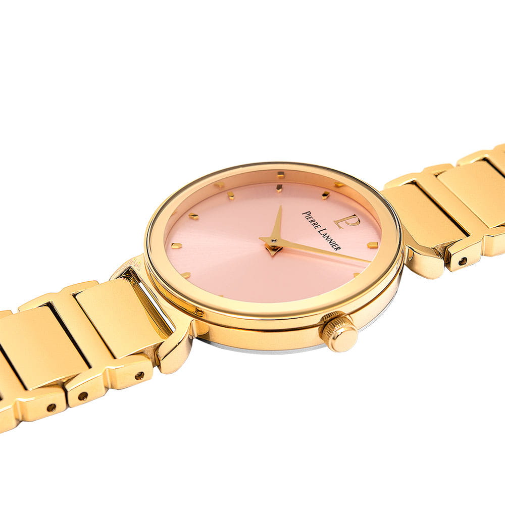 Женские кварцевые часы Pierre Lannier Ligne Pure 036N552. Центральные часовая и минутная стрелки. Розовый циферблат с часовыми индексами в виде штрихов. Круглый корпус выполнен из полированной нержавеющей стали с IP-покрытиемIP-покрытиеМетод ионного напыления. Демонстрирует повышенную устойчивость к истиранию, окислению и химическим веществам. Под воздействием высокого давления и температуры около 1500°C молекулы металла надёжно соединяются с частицами корпуса часов.. Прочное минеральное стеклоМинеральное стеклоМинеральное стекло представляет собой искусственно выращенный минерал кварца. Такое стекло отличается особой устойчивостью к повреждениям и царапинам. Уступает по некоторым качествам сапфировому стеклу., устойчивое к мелким механическим повреждениям. Водостойкость: 30 метров, позволит защитить корпус от случайных брызг или капель дождя. Браслет из нержавеющей стали с IP-покрытиемIP-покрытиеМетод ионного напыления. Демонстрирует повышенную устойчивость к истиранию, окислению и химическим веществам. Под воздействием высокого давления и температуры около 1500°C молекулы металла надёжно соединяются с частицами корпуса часов. на раскладной застёжкеРаскладная застёжкаТакой тип застёжки используется только на браслетах из металла. Она никогда не раскрывается полностью, происходит разделение на 2 и более частей. Раскладывающая застёжка снизит вероятность потери часов к минимуму..
