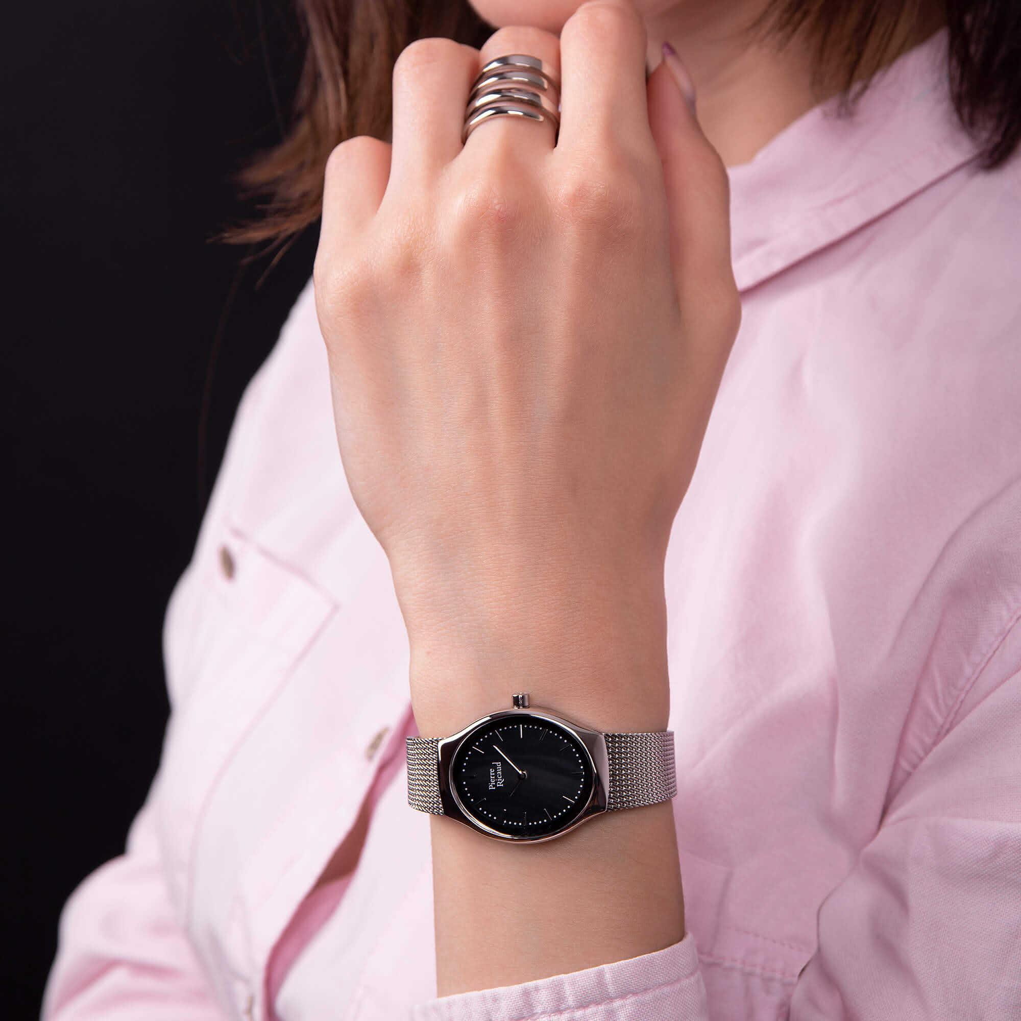 Женские немецкие часы с минеральным стекломМинеральное стеклоМинеральное стекло представляет собой искусственно выращенный минерал кварца. Такое стекло отличается особой устойчивостью к повреждениям и царапинам. Уступает по некоторым качествам сапфировому стеклу. Pierre Ricaud P22049.511EQ, кварцевый механизм с высокой точностью. Класс водозащиты: 30 метров, позволит защитить корпус от случайных брызг или капель дождя. Корпус часов изготовлен из стали. Стальной браслет на раскладной застёжкеРаскладная застёжкаТакой тип застёжки используется только на браслетах из металла. Она никогда не раскрывается полностью, происходит разделение на 2 и более частей. Раскладывающая застёжка снизит вероятность потери часов к минимуму..