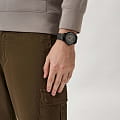 Стрелки часов покрыты люминесцентным составомЛюминесцентное покрытиеПозволяет считывать показания времени в темноте. Производители наносят на стрелки, часовые индексы, безель или поверхность циферблата светонакопительный состав, дающий холодное свечение., что позволяет легко считывать время даже в условиях низкой освещённости. Стальной браслет с раскладывающейся IPIP-покрытиеМетод ионного напыления. Демонстрирует повышенную устойчивость к истиранию, окислению и химическим веществам. Под воздействием высокого давления и температуры около 1500°C молекулы металла надёжно соединяются с частицами корпуса часов.-застёжкой обеспечивает комфорт и удобство при ношении.