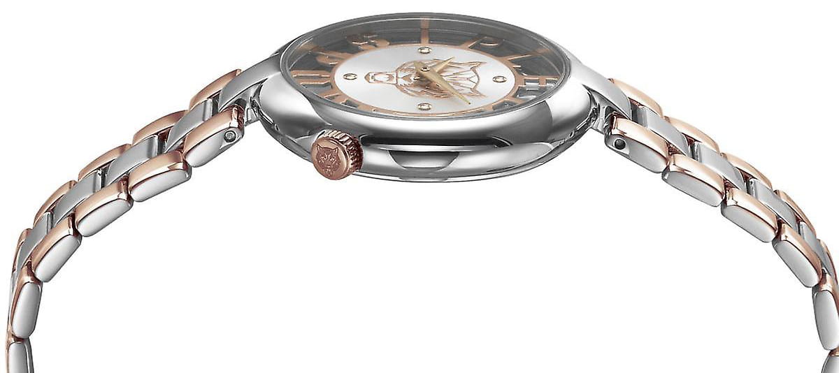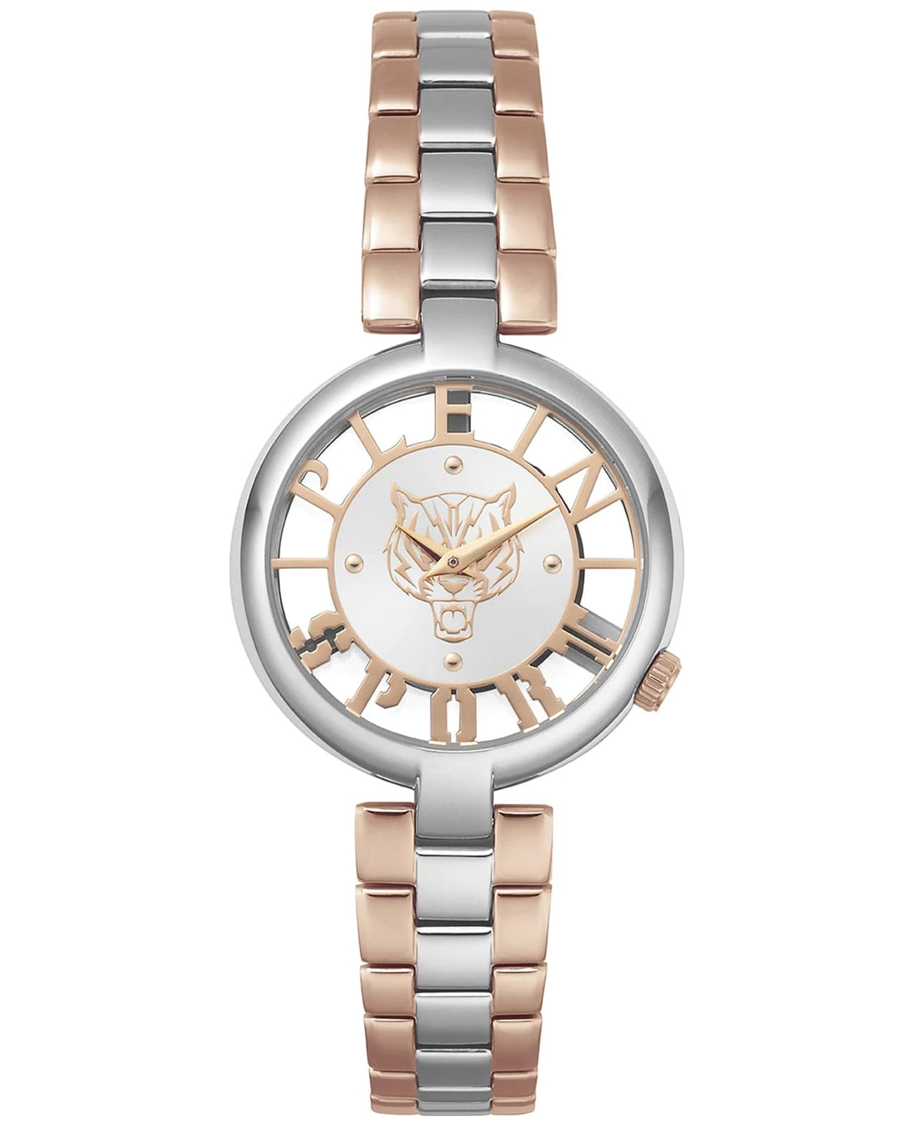 Немецкие женские кварцевые часы с минеральным стекломМинеральное стеклоМинеральное стекло представляет собой искусственно выращенный минерал кварца. Такое стекло отличается особой устойчивостью к повреждениям и царапинам. Уступает по некоторым качествам сапфировому стеклу. Plein Sport Tiger Luxe PSMBA0423, кварцевый механизм с высокой точностью. Класс водозащиты: 50 метров, позволит защитить корпус от случайных брызг или капель дождя. Корпус часов изготовлен из стали с IP-покрытиемIP-покрытиеМетод ионного напыления. Демонстрирует повышенную устойчивость к истиранию, окислению и химическим веществам. Под воздействием высокого давления и температуры около 1500°C молекулы металла надёжно соединяются с частицами корпуса часов.. Стальной браслет на раскладной застёжкеРаскладная застёжкаТакой тип застёжки используется только на браслетах из металла. Она никогда не раскрывается полностью, происходит разделение на 2 и более частей. Раскладывающая застёжка снизит вероятность потери часов к минимуму. с IP-покрытиемIP-покрытиеМетод ионного напыления. Демонстрирует повышенную устойчивость к истиранию, окислению и химическим веществам. Под воздействием высокого давления и температуры около 1500°C молекулы металла надёжно соединяются с частицами корпуса часов..