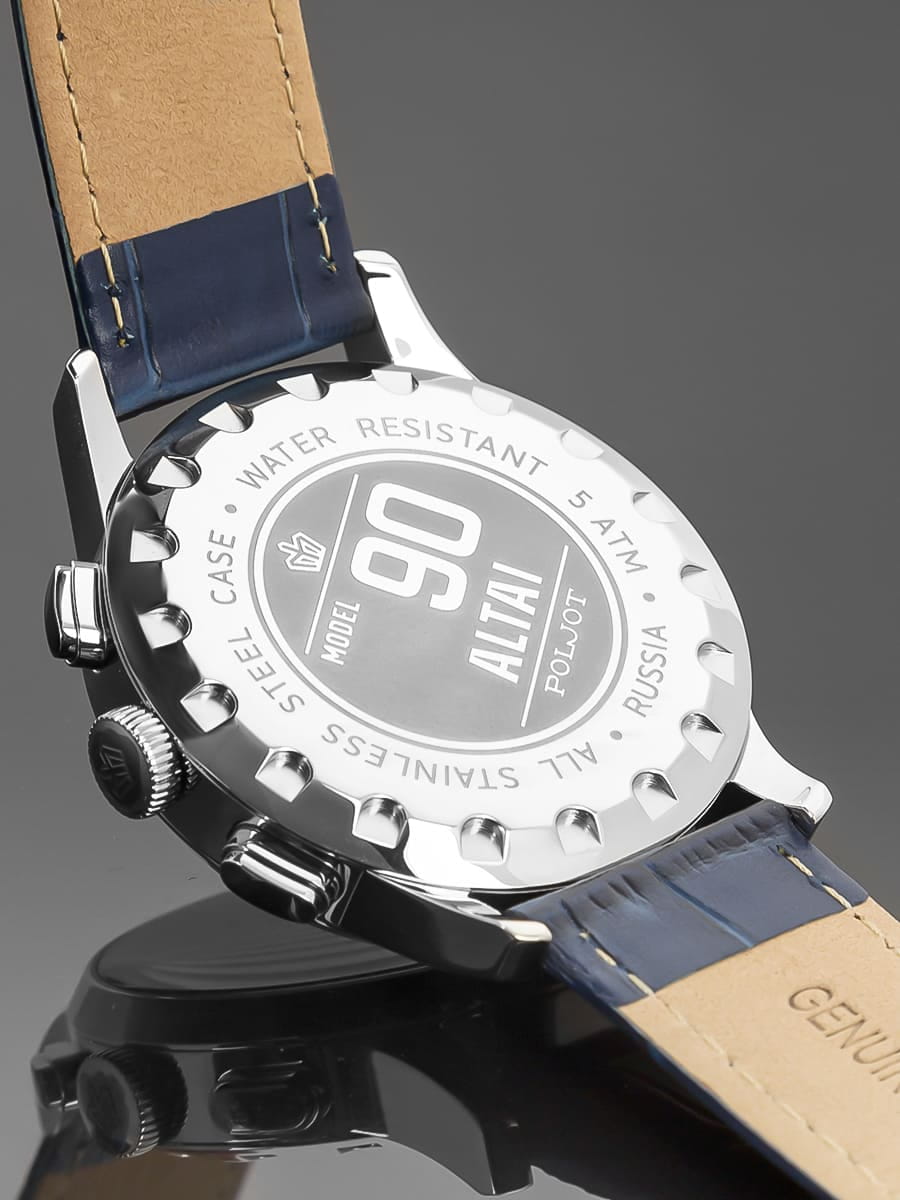 Poljot 6S21.901214 — современные мужские часы с выразительным спортивным дизайном и надёжной функциональностью. Корпус из нержавеющей стали подчёркивает прочность и уверенный характер модели, а глубокий циферблат с счётчиками хронографаХронографФункция позволяет измерять отрезки времени с особой точностью: часы, минуты, секунды. Верным признаком хронографа является наличие на циферблате 3 дополнительных окошек-счётчиков. и аккуратным окном даты придаёт часам динамичный вид. Контрастные стрелки и метки с люминесцентным покрытиемЛюминесцентное покрытиеПозволяет считывать показания времени в темноте. Производители наносят на стрелки, часовые индексы, безель или поверхность циферблата светонакопительный состав, дающий холодное свечение. обеспечивают удобство считывания информации в любое время суток, а внешняя шкала тахиметраТахиметрРазмеченная шкала, располагается на ободке или безеле часов. Тахиметр позволяет рассчитать скорость на определённом участке пути, расстояние измеряется в километрах или милях. добавляет спортивную функциональность. Прочное минеральное стеклоМинеральное стеклоМинеральное стекло представляет собой искусственно выращенный минерал кварца. Такое стекло отличается особой устойчивостью к повреждениям и царапинам. Уступает по некоторым качествам сапфировому стеклу. защищает циферблат от царапин, а ремешок из натуральной кожи гарантирует комфорт и элегантную посадку на запястье. Poljot — это гармония классики и спортивного духа, созданная для мужчин, ценящих точность, надёжность и уверенный стиль.