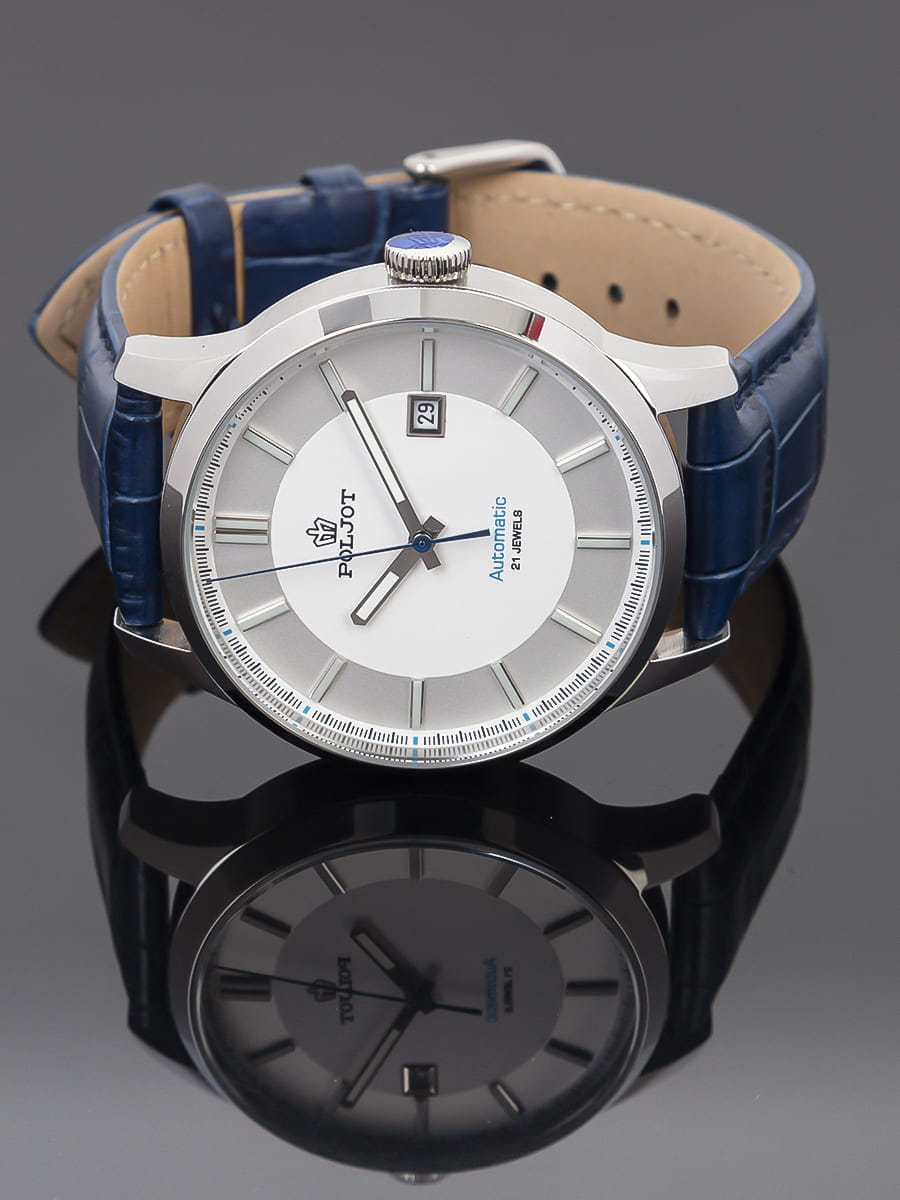 Poljot 8215.901223 — классические механические мужские часы с автоподзаводом, сочетающие сдержанный дизайн и надёжность российского часового производства. Корпус из нержавеющей стали подчёркивает строгость и универсальность модели, а циферблат с аккуратным окном даты на позиции «3 часов» обеспечивает превосходную читаемость. Стрелки и метки с люминесцентным покрытиемЛюминесцентное покрытиеПозволяет считывать показания времени в темноте. Производители наносят на стрелки, часовые индексы, безель или поверхность циферблата светонакопительный состав, дающий холодное свечение.. Механизм с автоподзаводом гарантирует стабильную работу и плавный ход стрелок. Прочное минеральное стеклоМинеральное стеклоМинеральное стекло представляет собой искусственно выращенный минерал кварца. Такое стекло отличается особой устойчивостью к повреждениям и царапинам. Уступает по некоторым качествам сапфировому стеклу. защищает циферблат от царапин, а ремешок из натуральной кожи придаёт часам современное и элегантное звучание. Poljot — это воплощение надёжности, классики и уверенного стиля, созданное для мужчин, предпочитающих традиционную механику и безупречный внешний вид.