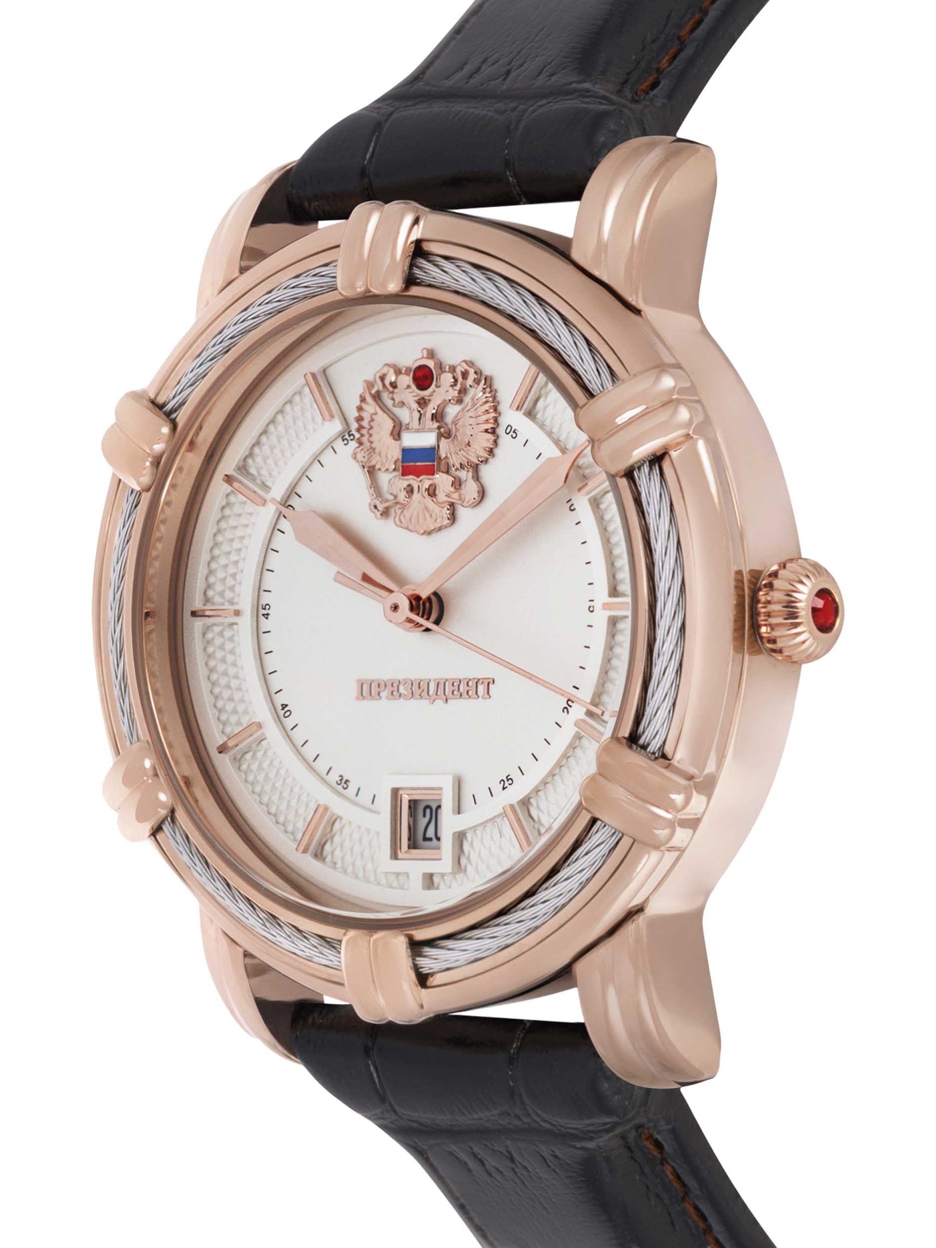 Мужские часы из коллекции «Президент» — это воплощение стиля, точности и российского качества. Модель выполнена в круглой форме с корпусом диаметром 37 мм и толщиной 11 мм, а также украшена кристаллами Swarovski на циферблате, что придаёт ей изысканность и блеск. Защиту механизма обеспечивает минеральное стеклоМинеральное стеклоМинеральное стекло представляет собой искусственно выращенный минерал кварца. Такое стекло отличается особой устойчивостью к повреждениям и царапинам. Уступает по некоторым качествам сапфировому стеклу., устойчивое к мелким повреждениям. Часы оснащены механизмом с автоподзаводом, обеспечивающим надёжную работу и минимальное обслуживание. Задняя крышка с чеканкой Герба России подчёркивает национальный стиль и уникальность модели. В комплект поставки входят подарочный футляр, паспорт с гарантийным талоном и фирменный пакет, что делает их идеальным выбором как для повседневного использования, так и для подарка. Водонепроницаемость позволяет использовать часы в повседневных условиях — при мытье рук или под лёгким дождём. Кожаный ремешок шириной 20 мм обеспечивает комфорт и элегантный внешний вид. Эти часы станут универсальным аксессуаром для тех, кто ценит сочетание эстетики, функциональности и российского мастерства — идеальный выбор для уверенных в себе мужчин, следящих за своим имиджем и предпочитающих выделяться.