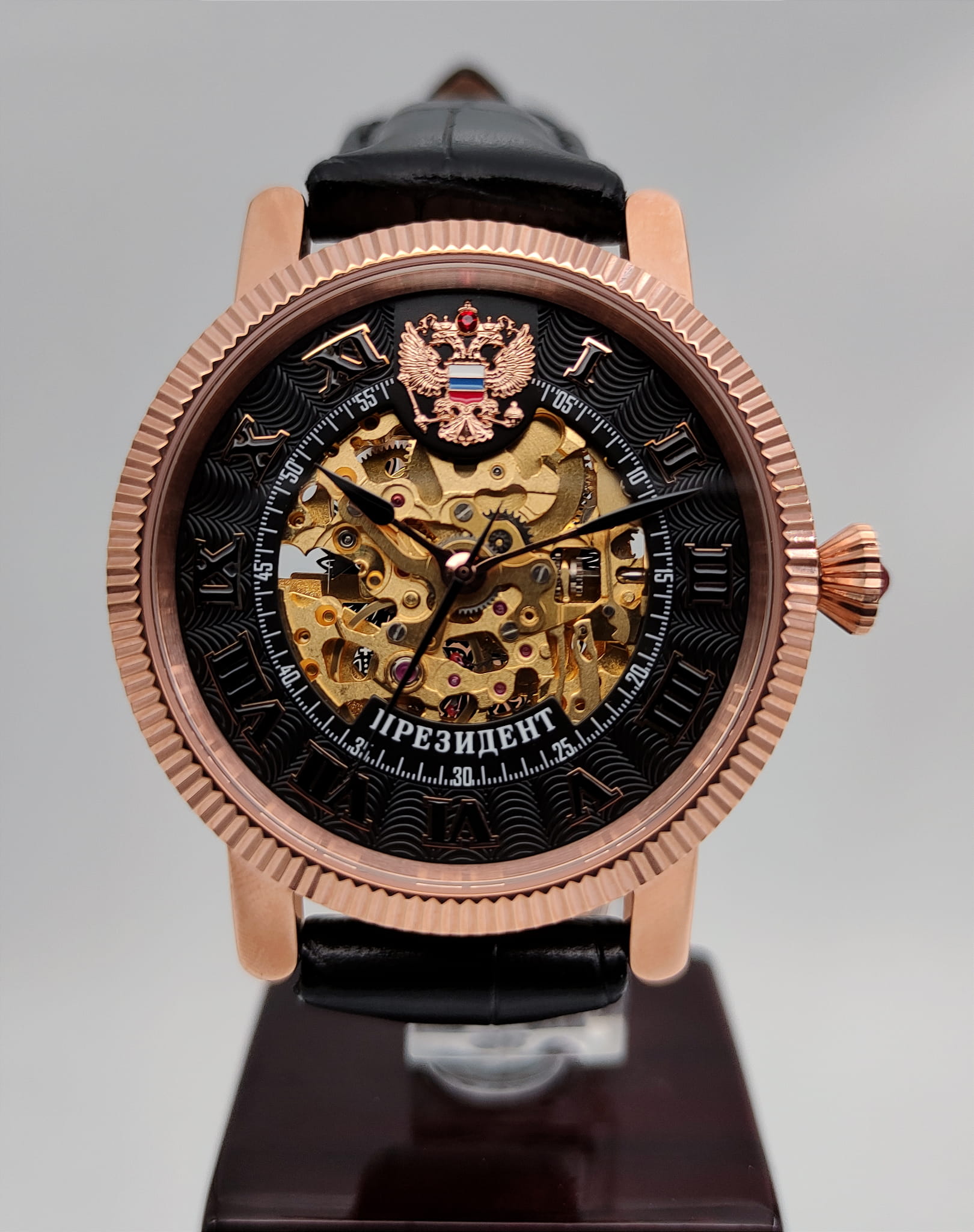 Часы «Президент» модели 4509171 — это мужские механические наручные часы с автоподзаводом, сочетающие элегантный дизайн и надёжность. Механизм: японский механизм Miyota с автоподзаводом, обеспечивающий точность и долговечность. Функции: часы, минуты, секунды. Корпус: из нержавеющей стали с PVD-покрытиемPVDУльтратонкое покрытие наносится в технике вакуумного напыления, сочетает в себе нитрид титана особой прочности со слоем золота или оксида хрома. Несёт в себе декоративную или защитную функцию., диаметром 42 мм. Стекло: минеральноеМинеральное стеклоМинеральное стекло представляет собой искусственно выращенный минерал кварца. Такое стекло отличается особой устойчивостью к повреждениям и царапинам. Уступает по некоторым качествам сапфировому стеклу., устойчивое к царапинам. Ремешок: кожаный, обеспечивающий комфорт при ношении. Эти часы станут идеальным выбором для тех, кто ценит стиль, качество и надёжность.