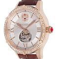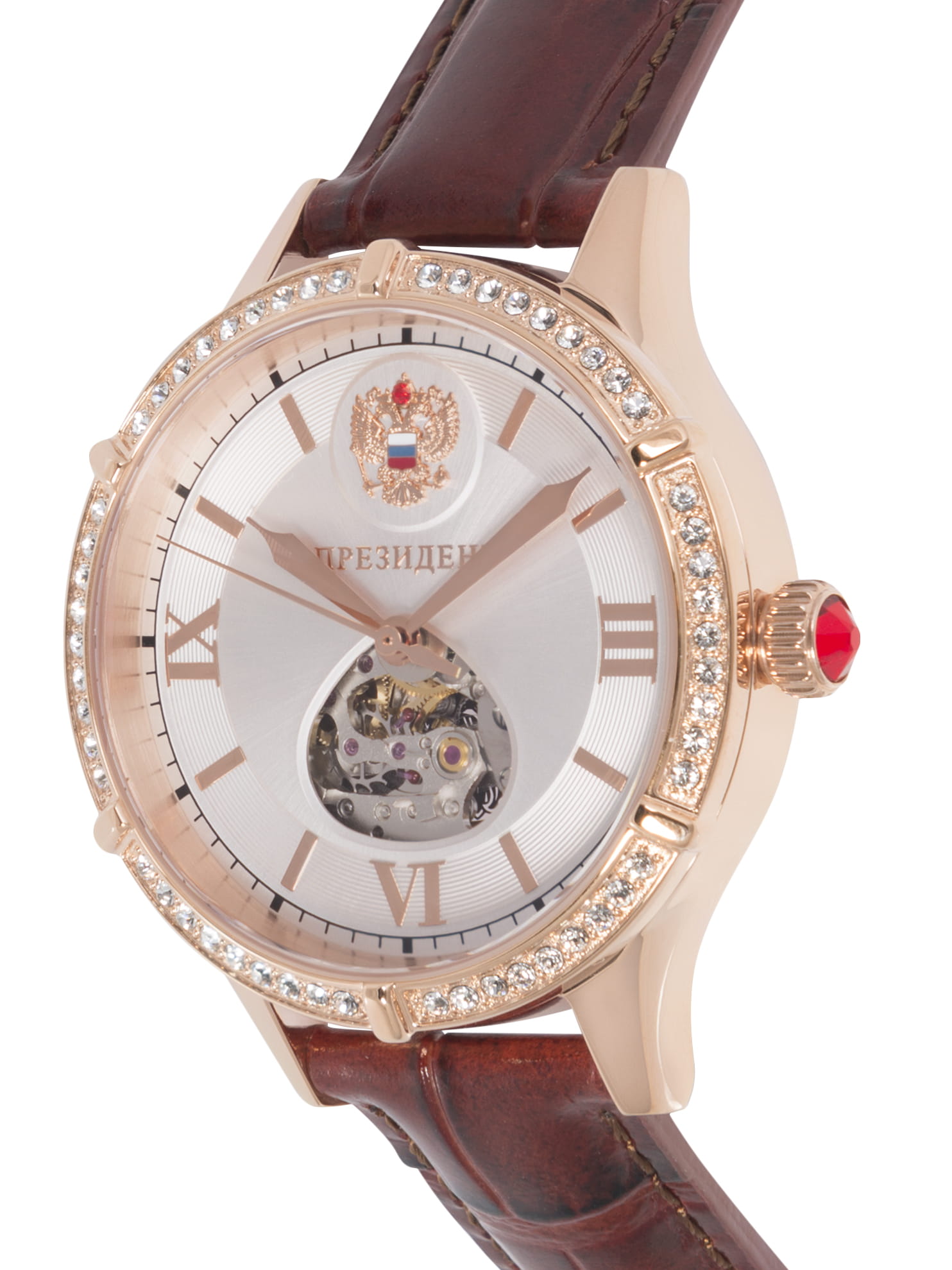 Часы «Президент» модели 4619161 — это женские механические наручные часы с автоподзаводом, сочетающие элегантный дизайн и надёжность. Механизм: японский механизм Miyota 6T28 с автоподзаводом, обеспечивающий точность и долговечность. Функции: часы, минуты, секунды. Корпус: из нержавеющей стали с PVD-покрытиемPVDУльтратонкое покрытие наносится в технике вакуумного напыления, сочетает в себе нитрид титана особой прочности со слоем золота или оксида хрома. Несёт в себе декоративную или защитную функцию., диаметром 36 мм инкрустирован кристаллами. Стекло: минеральноеМинеральное стеклоМинеральное стекло представляет собой искусственно выращенный минерал кварца. Такое стекло отличается особой устойчивостью к повреждениям и царапинам. Уступает по некоторым качествам сапфировому стеклу., устойчивое к царапинам. Водонепроницаемость: 3 ATM (30 метров), защищает от случайных брызг и дождя. Ремешок: кожаный, обеспечивающий комфорт при ношении. Эти часы идеально подойдут для женщин, ценящих сочетание стиля и функциональности.