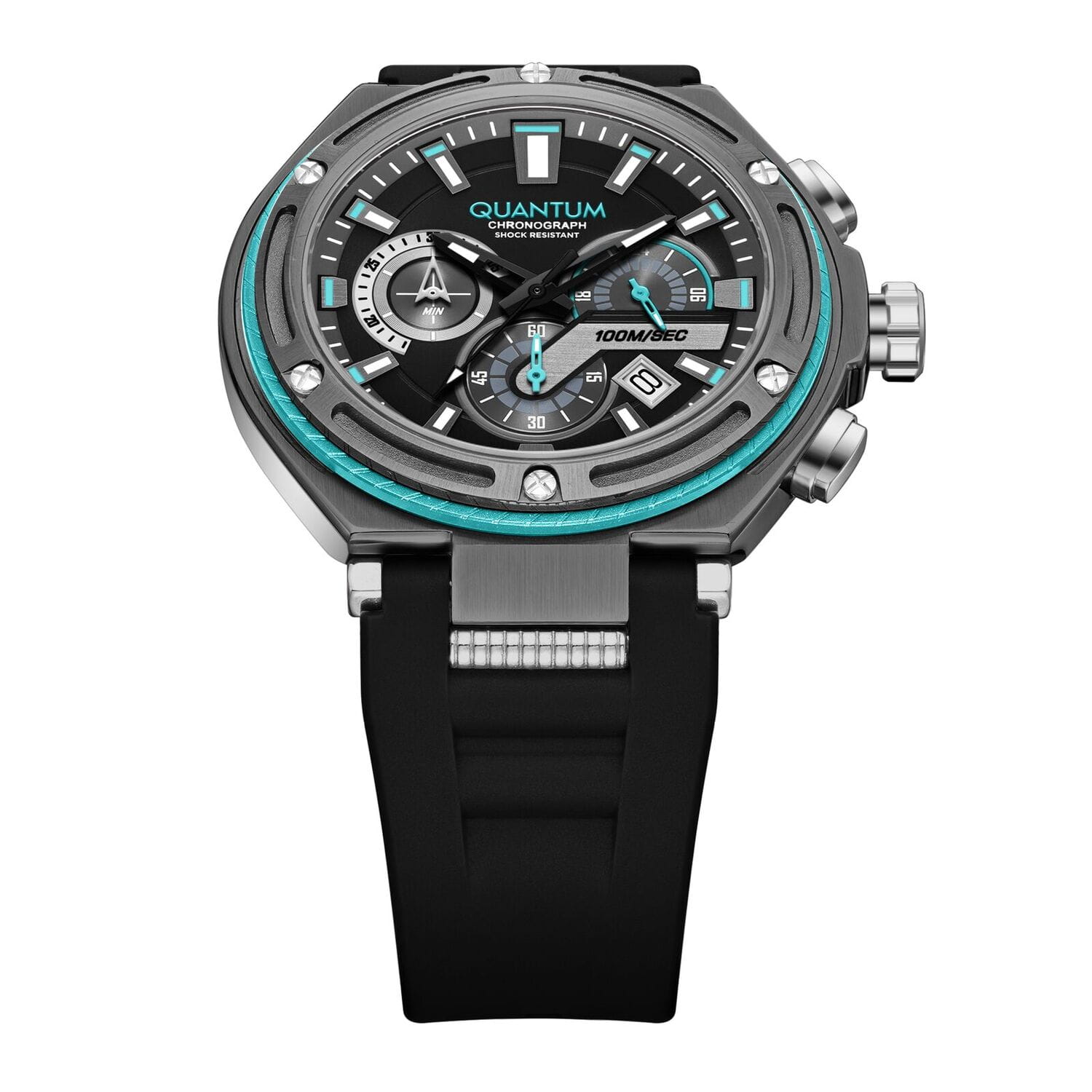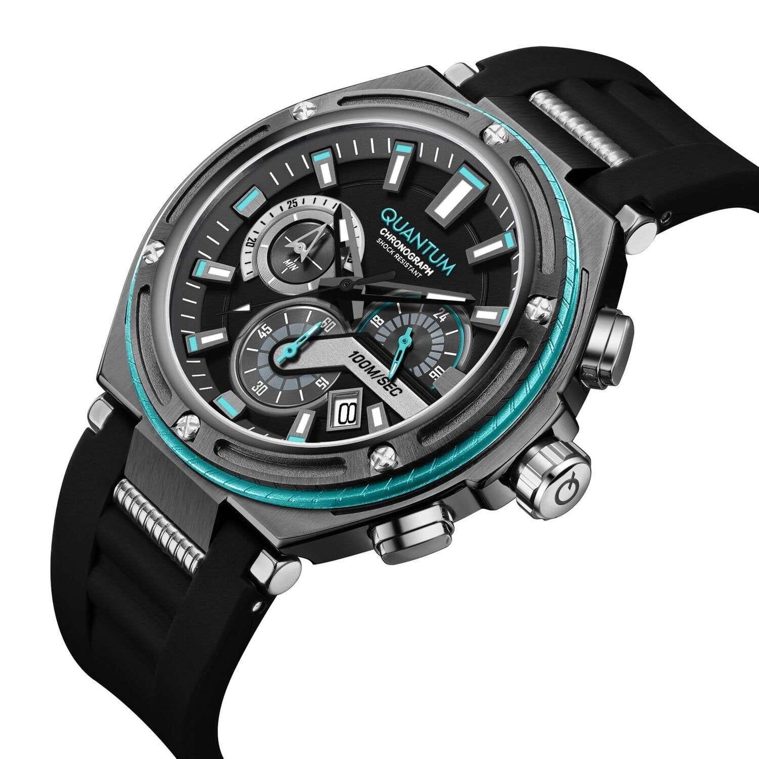 Мужские кварцевые часы Quantum HNG1010.061 из коллекции Hunter — мощный спортивный аксессуар с функцией хронографа и повышенной надёжностью. Корпус круглый, из нержавеющей стали с PVD-покрытиемPVDУльтратонкое покрытие наносится в технике вакуумного напыления, сочетает в себе нитрид титана особой прочности со слоем золота или оксида хрома. Несёт в себе декоративную или защитную функцию., диаметром 50 мм. Циферблат — чёрный с функциями хронографаХронографФункция позволяет измерять отрезки времени с особой точностью: часы, минуты, секунды. Верным признаком хронографа является наличие на циферблате 3 дополнительных окошек-счётчиков., даты и секундомера. Стекло — минеральноеМинеральное стеклоМинеральное стекло представляет собой искусственно выращенный минерал кварца. Такое стекло отличается особой устойчивостью к повреждениям и царапинам. Уступает по некоторым качествам сапфировому стеклу. с антибликовым покрытием. Механизм — японский кварцевый Seiko. Водонепроницаемость 100 м. Корпус — ударопрочныйУдаропрочный корпусМеханизм заключён в корпус, выполненный из современных материалов, устойчивых к ударам, механическим повреждениям и падению с высоты: инновационный пластик, карбон, нержавеющая сталь, титан.. Ремешок — чёрный силиконовый на стандартной застёжке. Идеальный выбор для тех, кто ценит турецкий дизайн и активный образ жизни.
