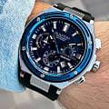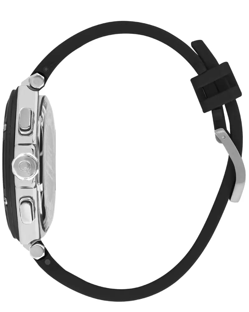 Мужские кварцевые часы Quantum HNG1010.391 из коллекции Hunter — крупные, надёжные и функциональные спортивные часы в классическом исполнении. Корпус круглый, из нержавеющей стали, диаметром 50 мм. Циферблат синий со штриховыми метками, с функциями хронографаХронографФункция позволяет измерять отрезки времени с особой точностью: часы, минуты, секунды. Верным признаком хронографа является наличие на циферблате 3 дополнительных окошек-счётчиков. и окошком даты. БезельБезельВнешний ободок, закрепляющий стекло. В спортивных часах так называется поворотное кольцо с делениями на циферблате, выполняет роль таймера – замеряет отрезки времени на шкале. Неподвижный безель – элемент декора. Однонаправленно вращающийся безель на дайверских часах позволяет фиксировать моменты погружения и выныривания на поверхность. с PVD-покрытиемPVDУльтратонкое покрытие наносится в технике вакуумного напыления, сочетает в себе нитрид титана особой прочности со слоем золота или оксида хрома. Несёт в себе декоративную или защитную функцию. синий. Стекло — минеральноеМинеральное стеклоМинеральное стекло представляет собой искусственно выращенный минерал кварца. Такое стекло отличается особой устойчивостью к повреждениям и царапинам. Уступает по некоторым качествам сапфировому стеклу. с антибликовым покрытием. Механизм — японский кварцевый Seiko. Корпус — ударопрочныйУдаропрочный корпусМеханизм заключён в корпус, выполненный из современных материалов, устойчивых к ударам, механическим повреждениям и падению с высоты: инновационный пластик, карбон, нержавеющая сталь, титан.. Водонепроницаемость 100 м. Ремешок — чёрный каучуковый на стандартной застёжке. Идеальный выбор для тех, кто ценит турецкий дизайн и повседневную надёжность.