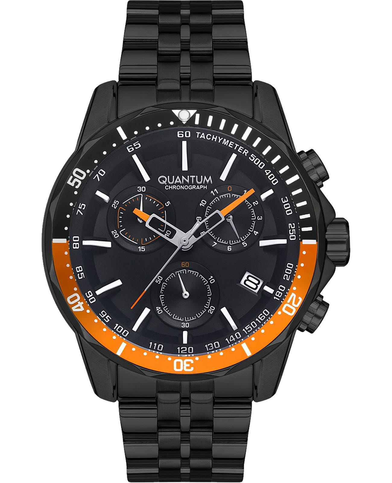 Мужские наручные часы-хронографХронографФункция позволяет измерять отрезки времени с особой точностью: часы, минуты, секунды. Верным признаком хронографа является наличие на циферблате 3 дополнительных окошек-счётчиков. Quantum PWG1036.650, кварцевый механизм с высокой точностью. Минеральное стеклоМинеральное стеклоМинеральное стекло представляет собой искусственно выращенный минерал кварца. Такое стекло отличается особой устойчивостью к повреждениям и царапинам. Уступает по некоторым качествам сапфировому стеклу. устойчивое к появлению царапин, обладающее высокой прозрачностью. Класс водозащиты: 100 метров, позволит плавать, нырять и заниматься другими водными видами спорта. Корпус часов изготовлен из нержавеющей стали с PVD-покрытиемPVDУльтратонкое покрытие наносится в технике вакуумного напыления, сочетает в себе нитрид титана особой прочности со слоем золота или оксида хрома. Несёт в себе декоративную или защитную функцию.. Стрелки и метки с люминесцентным покрытиемЛюминесцентное покрытиеПозволяет считывать показания времени в темноте. Производители наносят на стрелки, часовые индексы, безель или поверхность циферблата светонакопительный состав, дающий холодное свечение.. БезельБезельВнешний ободок, закрепляющий стекло. В спортивных часах так называется поворотное кольцо с делениями на циферблате, выполняет роль таймера – замеряет отрезки времени на шкале. Неподвижный безель – элемент декора. Однонаправленно вращающийся безель на дайверских часах позволяет фиксировать моменты погружения и выныривания на поверхность. с PVD-покрытиемPVDУльтратонкое покрытие наносится в технике вакуумного напыления, сочетает в себе нитрид титана особой прочности со слоем золота или оксида хрома. Несёт в себе декоративную или защитную функцию.. Стальной браслет на раскладной застёжкеРаскладная застёжкаТакой тип застёжки используется только на браслетах из металла. Она никогда не раскрывается полностью, происходит разделение на 2 и более частей. Раскладывающая застёжка снизит вероятность потери часов к минимуму. с PVD-покрытиемPVDУльтратонкое покрытие наносится в технике вакуумного напыления, сочетает в себе нитрид титана особой прочности со слоем золота или оксида хрома. Несёт в себе декоративную или защитную функцию..