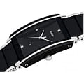 Часы Rado Integral Diamonds (артикул R20206712) представляют собой элегантное сочетание высокотехнологичной керамикиВысокотехнологичная керамикаИнновационный запатентованный Rado материал с гладкой или матовой поверхностью. Керамика за счёт кристаллической структуры обладает повышенной устойчивостью от возникновения царапин. Материал способен принимать температуру тела человека, обеспечивая невероятный комфорт при ношении. и нержавеющей стали, дополненное бриллиантовыми акцентами. Корпус размером 31,0 x 41,1 мм выполнен из комбинированных материалов с водозащитой до 5 бар (50 метров). Чёрный циферблат украшен четырьмя бриллиантовыми часовыми метками и окошком даты в положении «6 часов». Циферблат защищён сапфировым стекломСапфировое стеклоПрочный и надёжный материал из кристалла сапфира синтетического происхождения, характеризующийся особой твёрдостью и устойчивостью к царапинам и повреждениям., устойчивым к царапинам.