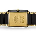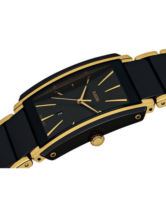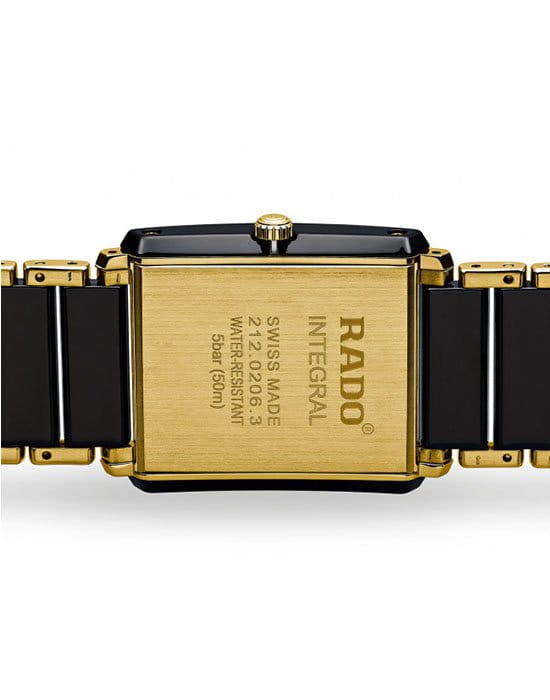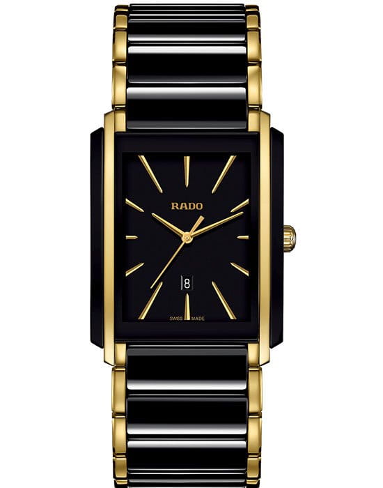 Корпус часов изготовлен из высококачественной стали с PVD-покрытиемPVDУльтратонкое покрытие наносится в технике вакуумного напыления, сочетает в себе нитрид титана особой прочности со слоем золота или оксида хрома. Несёт в себе декоративную или защитную функцию. и высокотехнологичной керамикиВысокотехнологичная керамикаИнновационный запатентованный Rado материал с гладкой или матовой поверхностью. Керамика за счёт кристаллической структуры обладает повышенной устойчивостью от возникновения царапин. Материал способен принимать температуру тела человека, обеспечивая невероятный комфорт при ношении., что обеспечивает их исключительную прочность и износоустойчивость. Такое сочетание материалов придаёт часам не только изысканную красоту, но и невероятную лёгкость, что делает их комфортными в носке.