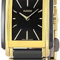 Лаконичный и сдержанный аксессуар точно понравится приверженцам классического стиля, минималистичный циферблат отличается удлинёнными часовыми индексами. Оригинально смотрится сочетание нержавеющей стали 316L и высокотехнологичной керамикиВысокотехнологичная керамикаИнновационный запатентованный Rado материал с гладкой или матовой поверхностью. Керамика за счёт кристаллической структуры обладает повышенной устойчивостью от возникновения царапин. Материал способен принимать температуру тела человека, обеспечивая невероятный комфорт при ношении.. Кварцевый механизм ETA 976.001 с высокой точностью хода. Сапфировое стеклоСапфировое стеклоПрочный и надёжный материал из кристалла сапфира синтетического происхождения, характеризующийся особой твёрдостью и устойчивостью к царапинам и повреждениям.. Водозащита 5 бар. PVD-покрытиеPVDУльтратонкое покрытие наносится в технике вакуумного напыления, сочетает в себе нитрид титана особой прочности со слоем золота или оксида хрома. Несёт в себе декоративную или защитную функцию. золотистого цвета, устойчивое к истиранию. Водонепроницаемость 30 метров, позволит защитить корпус от случайных брызг или капель дождя.