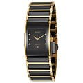 Женские часы Rado Integral R20788752 с надёжным кварцевым механизмом. Сапфировое стеклоСапфировое стеклоПрочный и надёжный материал из кристалла сапфира синтетического происхождения, характеризующийся особой твёрдостью и устойчивостью к царапинам и повреждениям. устойчивое к мелким механическим повреждениям. Корпус выполнен из нержавеющей стали с PVD-покрытиемPVDУльтратонкое покрытие наносится в технике вакуумного напыления, сочетает в себе нитрид титана особой прочности со слоем золота или оксида хрома. Несёт в себе декоративную или защитную функцию.. Класс водозащиты: 30 метров, позволит защитить корпус от случайных брызг или капель дождя. Циферблат декорирован 6 бриллиантами. Стальной браслет с PVD-покрытиемPVDУльтратонкое покрытие наносится в технике вакуумного напыления, сочетает в себе нитрид титана особой прочности со слоем золота или оксида хрома. Несёт в себе декоративную или защитную функцию. с вставками из высокотехнологичной керамикиВысокотехнологичная керамикаИнновационный запатентованный Rado материал с гладкой или матовой поверхностью. Керамика за счёт кристаллической структуры обладает повышенной устойчивостью от возникновения царапин. Материал способен принимать температуру тела человека, обеспечивая невероятный комфорт при ношении. на раскладной застёжкеРаскладная застёжкаТакой тип застёжки используется только на браслетах из металла. Она никогда не раскрывается полностью, происходит разделение на 2 и более частей. Раскладывающая застёжка снизит вероятность потери часов к минимуму.. Отображение даты в положении «6 часов».