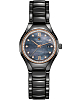 Люксовая модель отличается лаконичным исполнением, перламутровый циферблат идеально гармонирует с мягким блеском высокотехнологичной керамикиВысокотехнологичная керамикаИнновационный запатентованный Rado материал с гладкой или матовой поверхностью. Керамика за счёт кристаллической структуры обладает повышенной устойчивостью от возникновения царапин. Материал способен принимать температуру тела человека, обеспечивая невероятный комфорт при ношении.. 10 бриллиантов оттенка Top Wesselton в 0,080 карат использованы вместо часовых индексов, 60 штук драгоценных камней в 0,126 карат украшают безельБезельВнешний ободок, закрепляющий стекло. В спортивных часах так называется поворотное кольцо с делениями на циферблате, выполняет роль таймера – замеряет отрезки времени на шкале. Неподвижный безель – элемент декора. Однонаправленно вращающийся безель на дайверских часах позволяет фиксировать моменты погружения и выныривания на поверхность.. Часы с автоматической системой завода работают благодаря швейцарскому механизму ETA 2671, отличающегося запасом хода 38 часов. Сапфировое стекло. Водонепроницаемость 50 метров. . Индикация текущего числа. Диаметр корпуса: 30 мм.