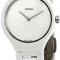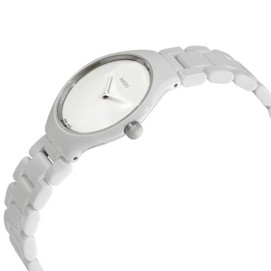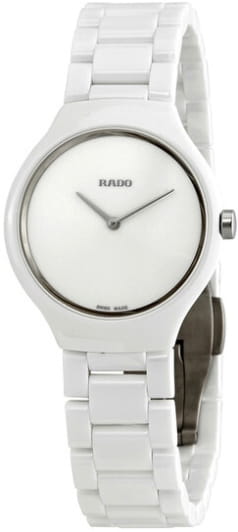 Швейцарские женские Rado True Thinline R27958022, кварцевый механизм с высокой точностью. Сапфировое стеклоСапфировое стеклоПрочный и надёжный материал из кристалла сапфира синтетического происхождения, характеризующийся особой твёрдостью и устойчивостью к царапинам и повреждениям. устойчивое к появлению царапин, обладающее высокой прозрачностью. Корпус часов изготовлен из высокотехнологичной керамикиВысокотехнологичная керамикаИнновационный запатентованный Rado материал с гладкой или матовой поверхностью. Керамика за счёт кристаллической структуры обладает повышенной устойчивостью от возникновения царапин. Материал способен принимать температуру тела человека, обеспечивая невероятный комфорт при ношении.. Класс водозащиты: 30 метров, позволит защитить корпус от случайных брызг или капель дождя. Керамический браслет на застёжке-бабочке с кнопкамиЗастёжка "бабочка"Такой вид застёжки дополняется предохранителями, помогающими избежать случайного раскрытия браслета. Обладают изящным исполнением. .