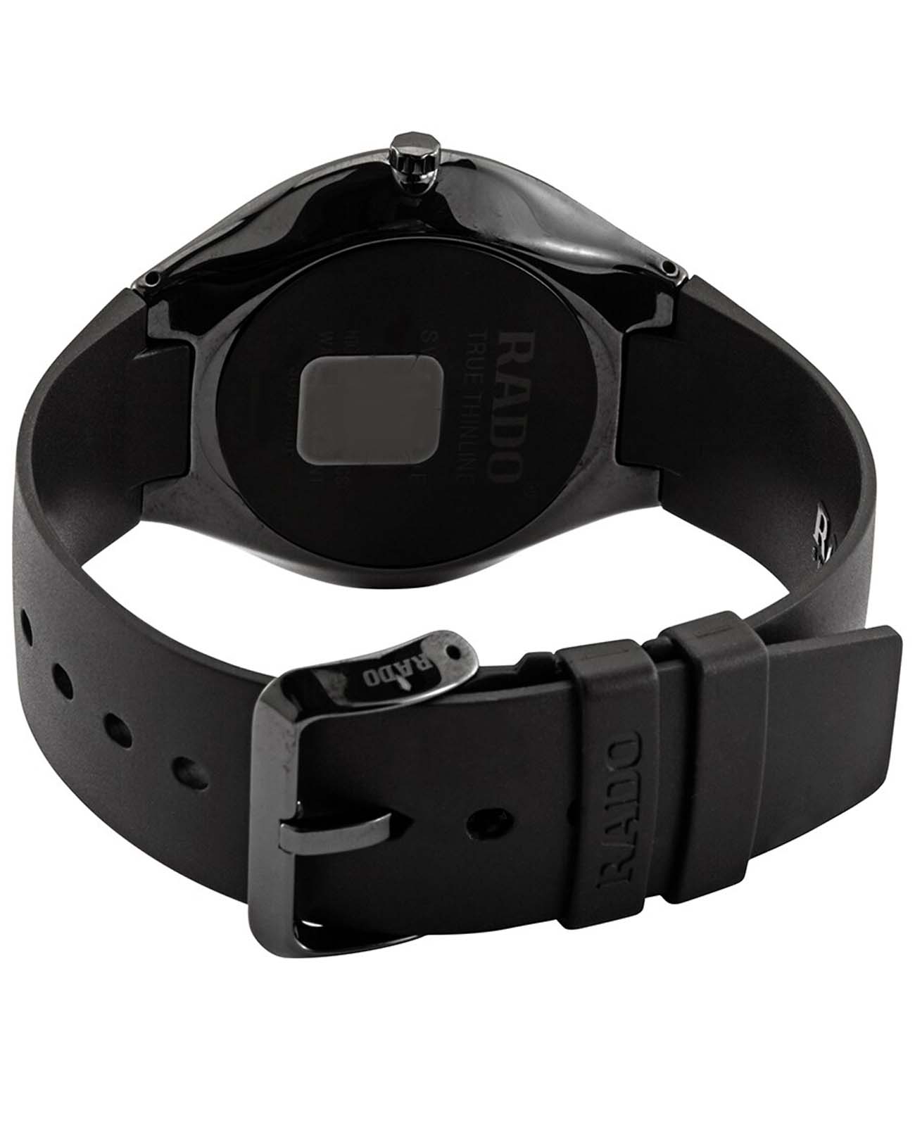 Женские механические швейцарские часы с автоподзаводом Rado True Thinline R27969159. Сапфировое стеклоСапфировое стеклоПрочный и надёжный материал из кристалла сапфира синтетического происхождения, характеризующийся особой твёрдостью и устойчивостью к царапинам и повреждениям. устойчивое к появлению царапин, обладающее высокой прозрачностью. Корпус часов изготовлен из высокотехнологичной керамикиВысокотехнологичная керамикаИнновационный запатентованный Rado материал с гладкой или матовой поверхностью. Керамика за счёт кристаллической структуры обладает повышенной устойчивостью от возникновения царапин. Материал способен принимать температуру тела человека, обеспечивая невероятный комфорт при ношении.. Класс водозащиты: 30 метров, позволит защитить корпус от случайных брызг или капель дождя. Каучуковый ремешок на стандартной застежке.