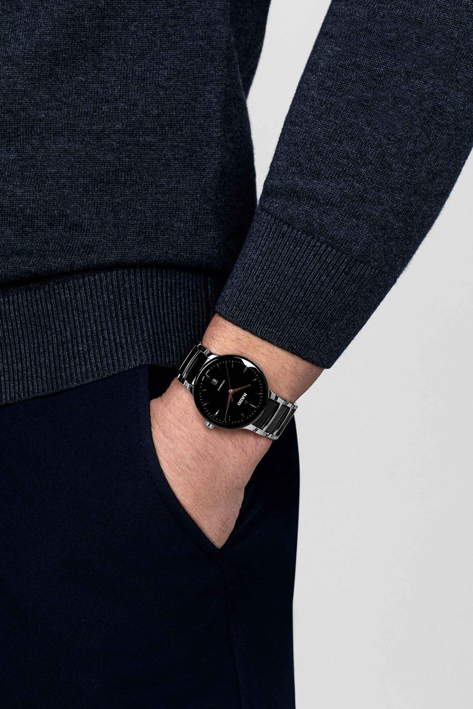 Циферблат защищён сапфировым стекломСапфировое стеклоПрочный и надёжный материал из кристалла сапфира синтетического происхождения, характеризующийся особой твёрдостью и устойчивостью к царапинам и повреждениям., известным своей непревзойденной твёрдостью и устойчивостью к царапинам, что гарантирует долговечность и сохранность внешнего вида часов. Браслет изготовлен из нержавеющей стали и высокотехнологичной плазменной керамикиВысокотехнологичная плазменная керамикаИнновационный материал, технология запатентована. Выплавление керамики осуществляется в печи при 20 000 °C, белоснежный материал под воздействием ультравысокой температуры приобретает уникальный блеск, присущий металлам., что придаёт аксессуару дополнительную прочность и лёгкость. Водонепроницаемость до 50 метров позволяет использовать часы в повседневной жизни без опасений за их состояние. Удобная обеспечивает надёжное крепление браслета на руке. Дополнительным удобством является окошко даты, расположенное на циферблате, позволяющее всегда оставаться в курсе текущего дня месяца.
