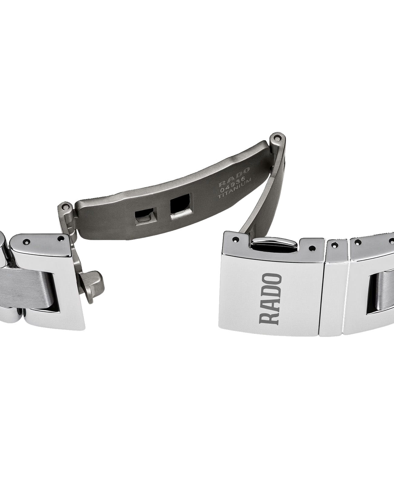 Мужские механические швейцарские часы-хронографХронографФункция позволяет измерять отрезки времени с особой точностью: часы, минуты, секунды. Верным признаком хронографа является наличие на циферблате 3 дополнительных окошек-счётчиков. с автоподзаводом Rado Hyperchrome Automatic Chronograph R32042303. Сапфировое стеклоСапфировое стеклоПрочный и надёжный материал из кристалла сапфира синтетического происхождения, характеризующийся особой твёрдостью и устойчивостью к царапинам и повреждениям. устойчивое к мелким механическим повреждениям. Корпус часов изготовлен из нержавеющей стали и титана. БезельБезельВнешний ободок, закрепляющий стекло. В спортивных часах так называется поворотное кольцо с делениями на циферблате, выполняет роль таймера – замеряет отрезки времени на шкале. Неподвижный безель – элемент декора. Однонаправленно вращающийся безель на дайверских часах позволяет фиксировать моменты погружения и выныривания на поверхность. со шкалой тахиметраТахиметрРазмеченная шкала, располагается на ободке или безеле часов. Тахиметр позволяет рассчитать скорость на определённом участке пути, расстояние измеряется в километрах или милях. из высокотехнологичной керамикиВысокотехнологичная керамикаИнновационный запатентованный Rado материал с гладкой или матовой поверхностью. Керамика за счёт кристаллической структуры обладает повышенной устойчивостью от возникновения царапин. Материал способен принимать температуру тела человека, обеспечивая невероятный комфорт при ношении.. Окошко даты находится в положении между 4 и 5 часами. Стрелки с люминесцентным покрытиемЛюминесцентное покрытиеПозволяет считывать показания времени в темноте. Производители наносят на стрелки, часовые индексы, безель или поверхность циферблата светонакопительный состав, дающий холодное свечение.. Класс водозащиты: 100 метров, позволит плавать, нырять и заниматься другими водными видами спорта. Браслет из нержавеющей стали и титана на раскладной застёжкеРаскладная застёжкаТакой тип застёжки используется только на браслетах из металла. Она никогда не раскрывается полностью, происходит разделение на 2 и более частей. Раскладывающая застёжка снизит вероятность потери часов к минимуму..