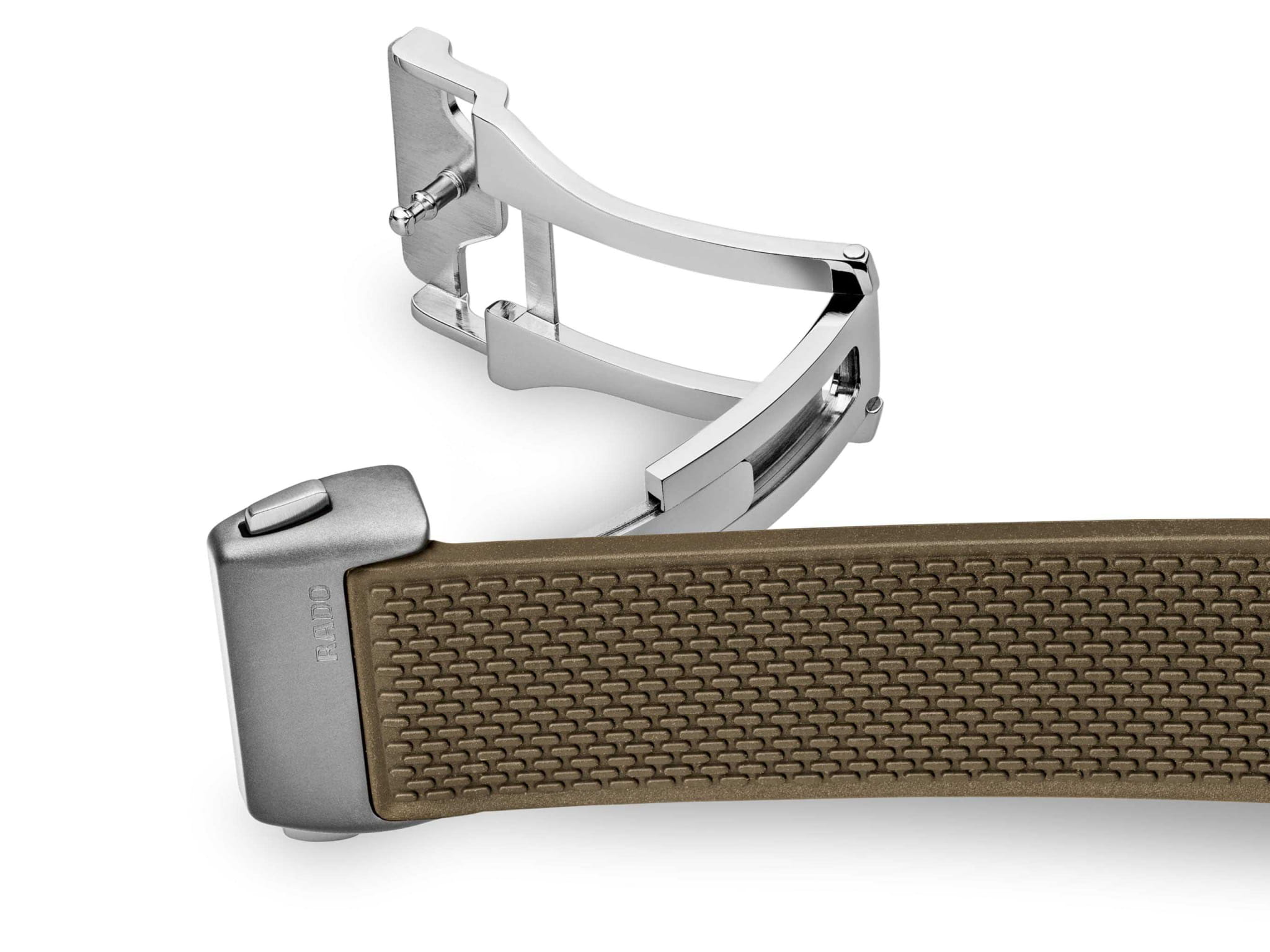 Высокотехнологичные керамические часы Captain Cook для дайверов (300 WR). Стрелки и индексы дайверских часов, сертифицированных по стандарту ISO 6425, покрыты SuperLuminova®, что обеспечивает отличную видимость на матовом оливково-зеленом циферблате. 43-миллиметровый моноблочный корпус изготовлен из матовой оливково-зеленой высокотехнологичной керамикиВысокотехнологичная керамикаИнновационный запатентованный Rado материал с гладкой или матовой поверхностью. Керамика за счёт кристаллической структуры обладает повышенной устойчивостью от возникновения царапин. Материал способен принимать температуру тела человека, обеспечивая невероятный комфорт при ношении., а вращающийся безельБезельВнешний ободок, закрепляющий стекло. В спортивных часах так называется поворотное кольцо с делениями на циферблате, выполняет роль таймера – замеряет отрезки времени на шкале. Неподвижный безель – элемент декора. Однонаправленно вращающийся безель на дайверских часах позволяет фиксировать моменты погружения и выныривания на поверхность. - из полированной нержавеющей стали. Внутри механизм Rado R763 с автоподзаводом превосходит стандартные требования по проверке точности в 3-5 положениях и обеспечивает 80 часов запаса хода. Эта модель поставляется с матовым каучуковым ремешком оливково-зеленого цвета. Какой бы ни была ваша область исследований, ваш высокотехнологичный керамический дайвер Captain Cook станет надежным партнером на долгие годы.